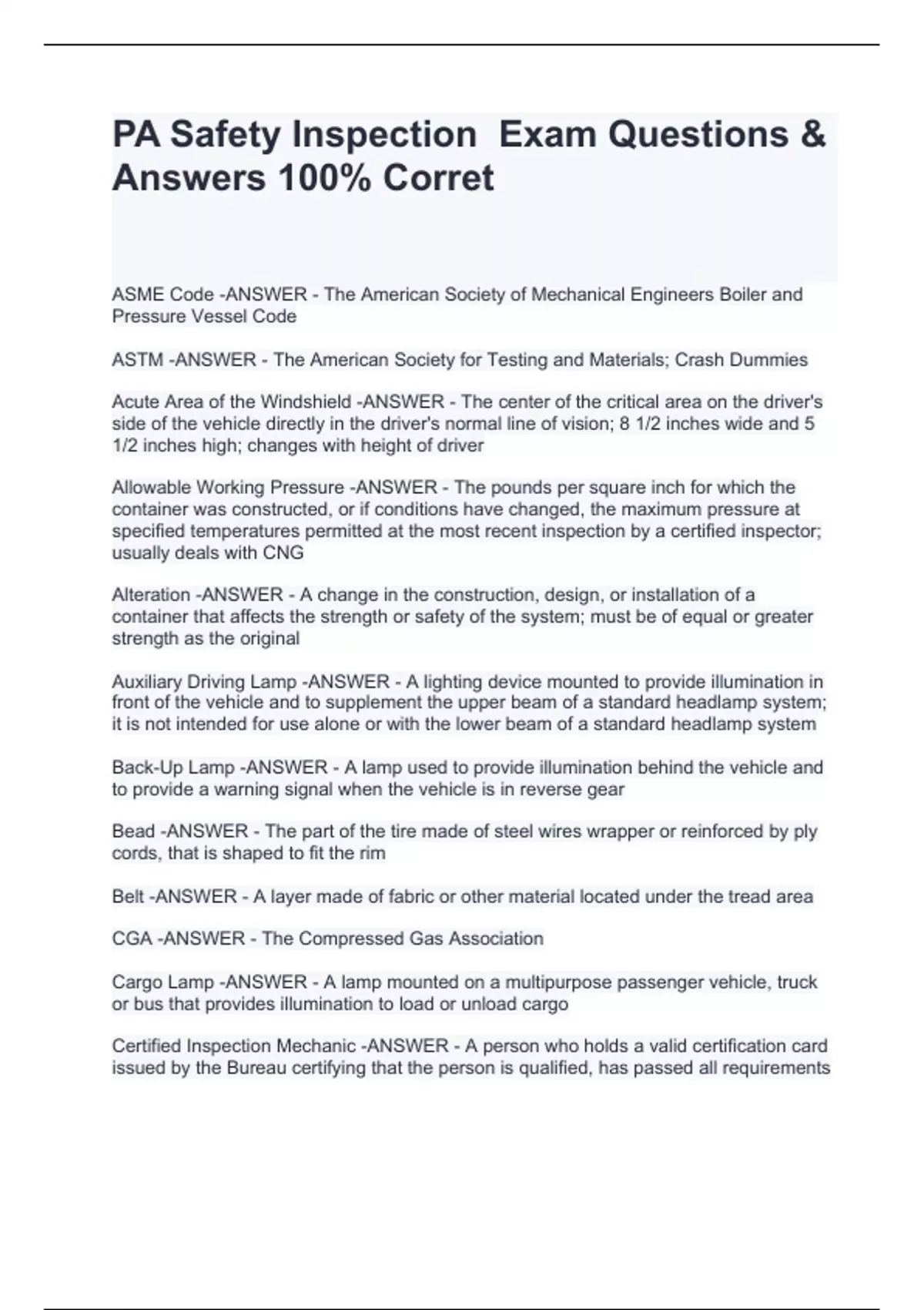 Pa Safety Inpection Exam Questions With Verified Answers Latest Updated