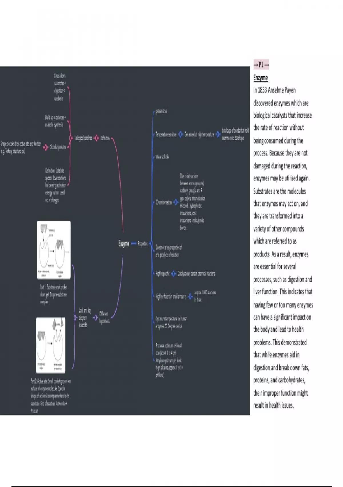 Lock and key model → Enzymes are large molecules made of proteins. A substance known as a