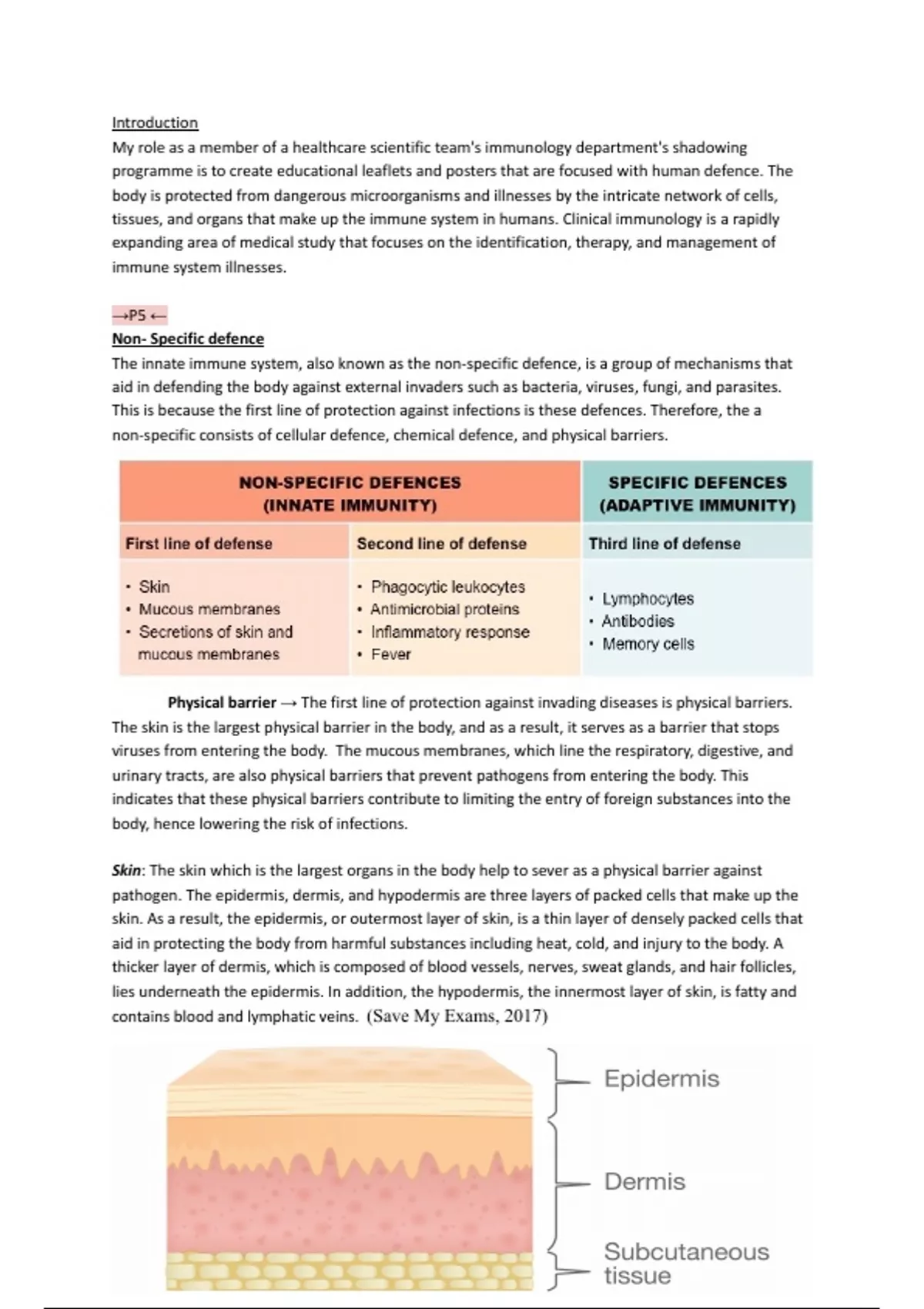 My role as a member of a healthcare scientific team's immunology department's shadowing