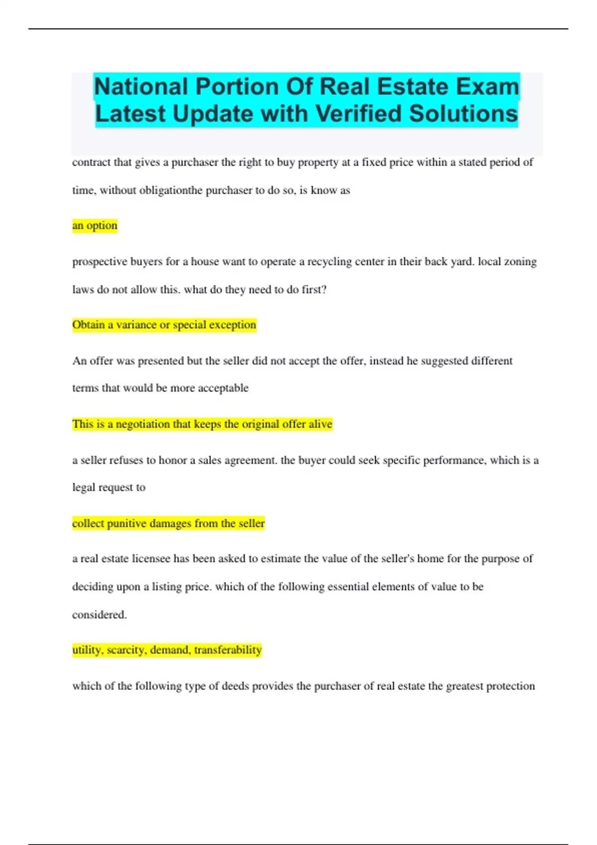 National Portion Of Real Estate Exam Latest Update with Verified Solutions