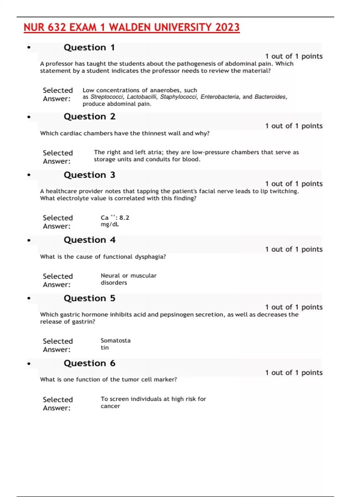 NUR 632 EXAM 1 WALDEN UNIVERSITY 2023