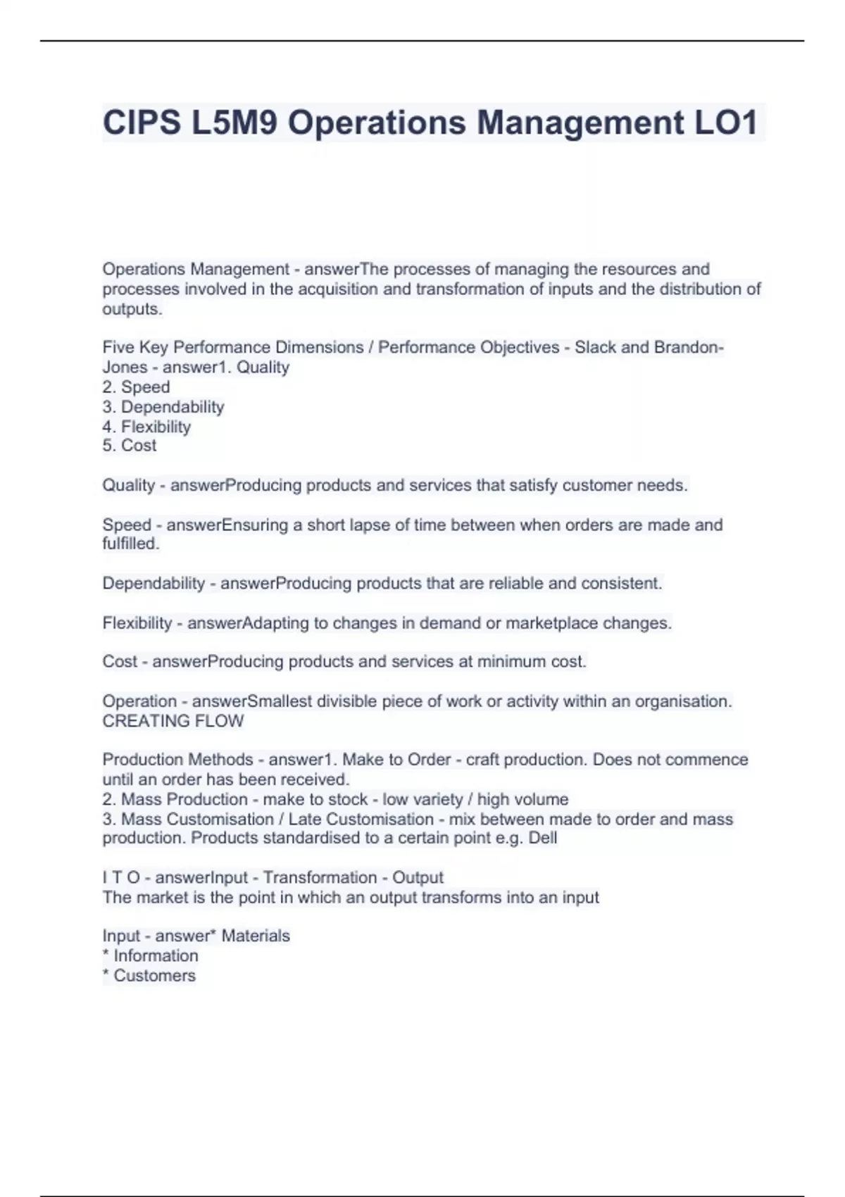 CIPS L5M9 Operations Management LO1 Questions and Answers 2024