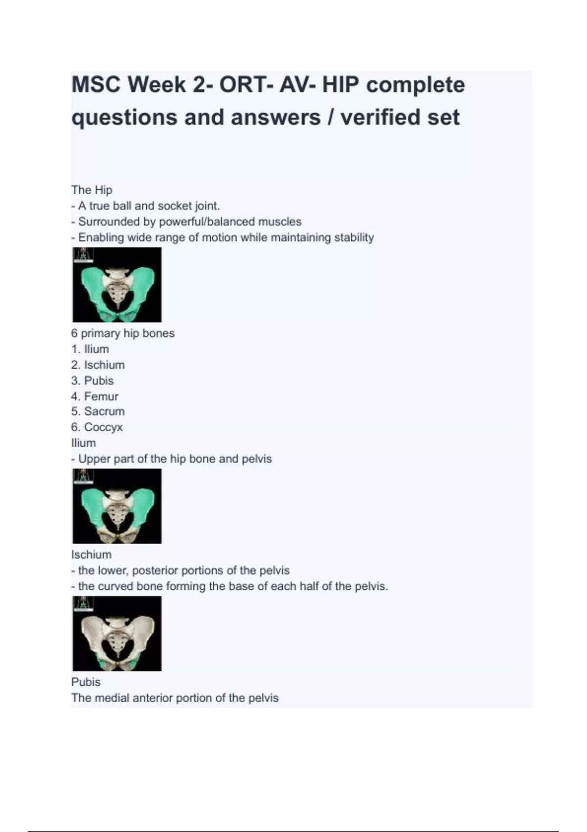 MSC Week 2- ORT- AV- HIP complete questions and answers / verified set