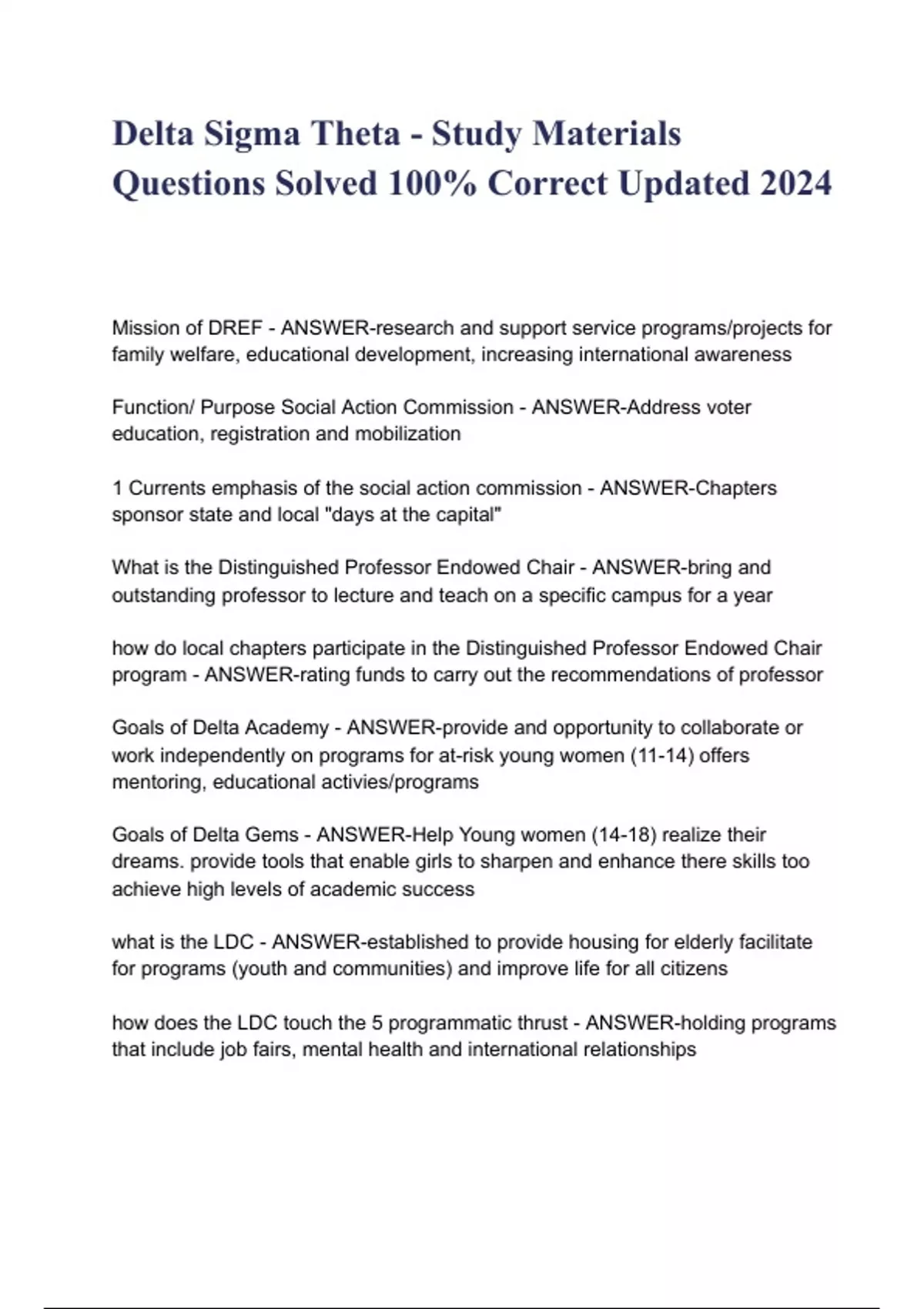 Delta Sigma Theta - Study Materials Questions Solved 100% Correct Updated 2024