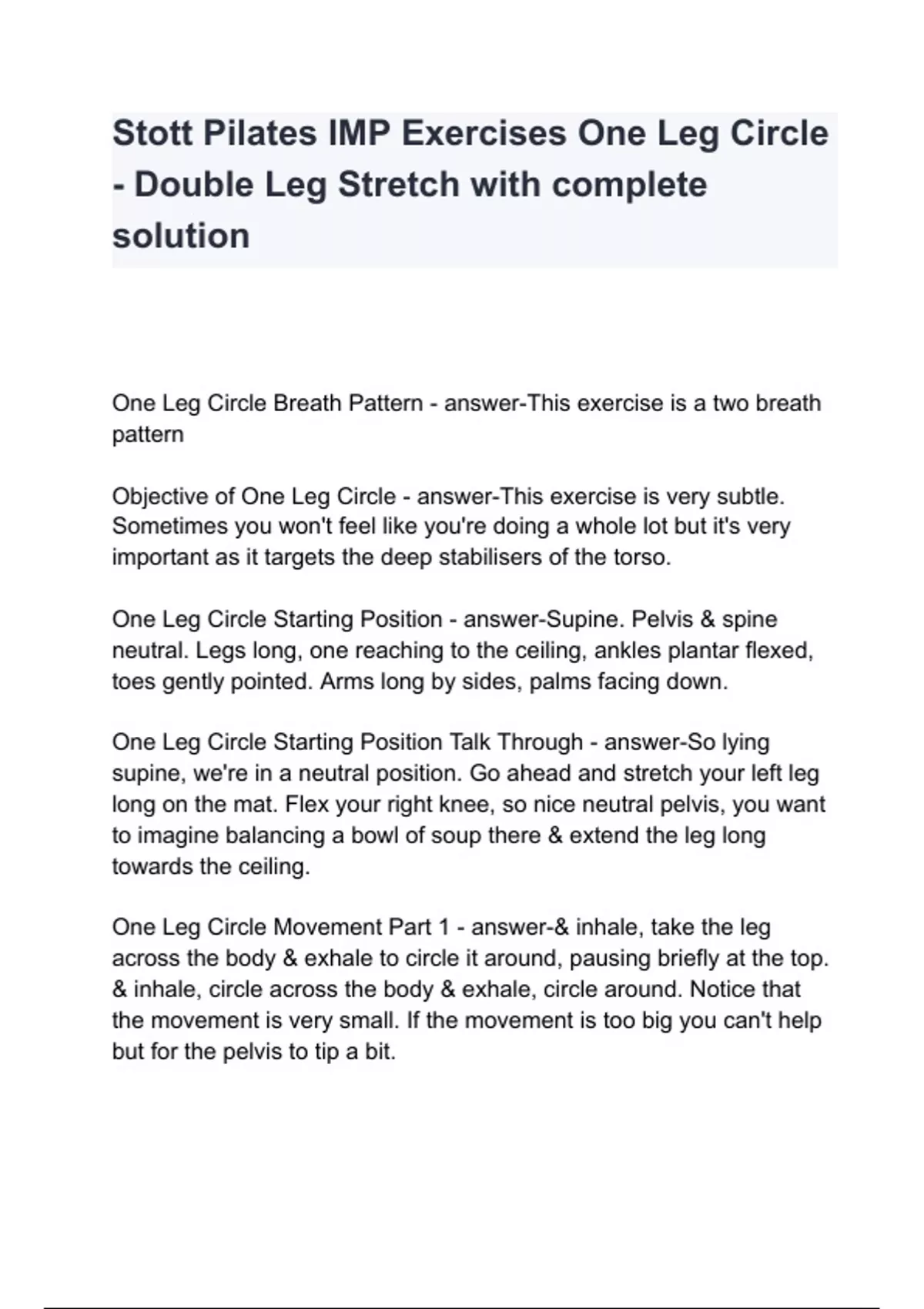 Stott Pilates IMP Exercises One Leg Circle - Double Leg Stretch with complete solution