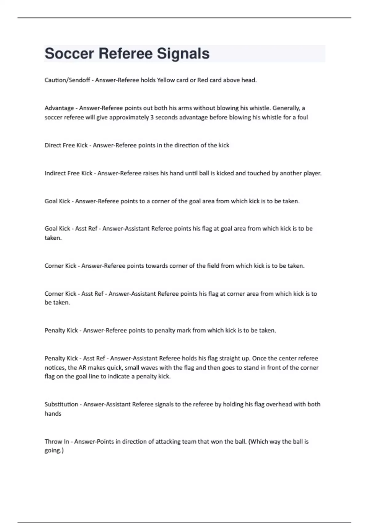 Soccer Referee Signals Questions With 100% Correct Answers