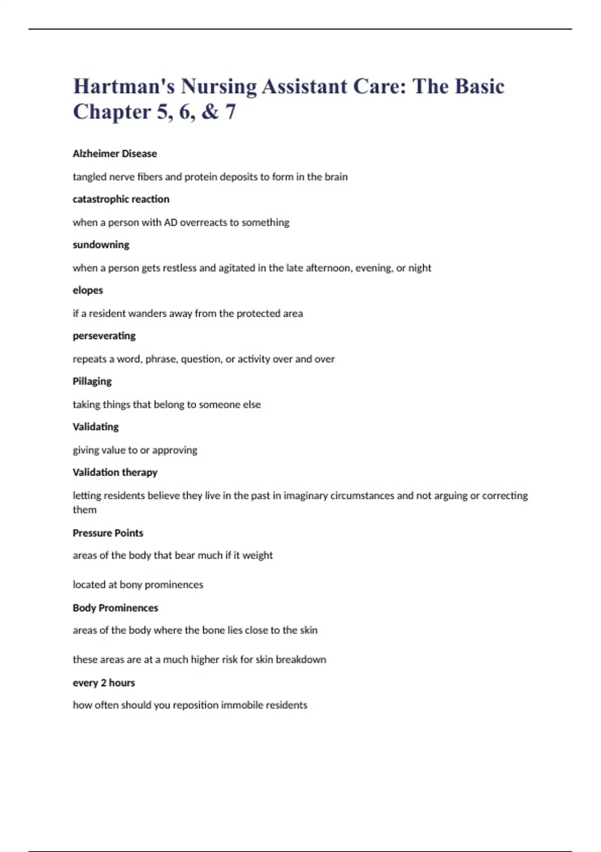 Hartman's Nursing Assistant Care: The Basic Chapter 5, 6, & 7