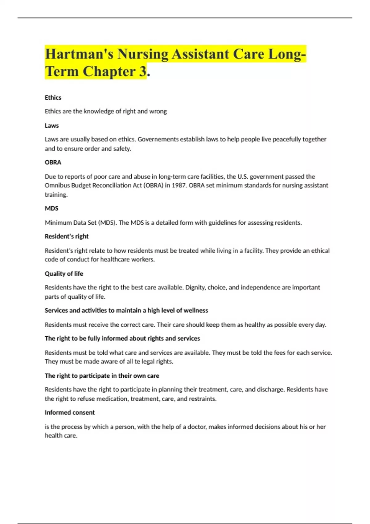 Resident's right relate to how residents must be treated while living in a facility. They provide an ethical