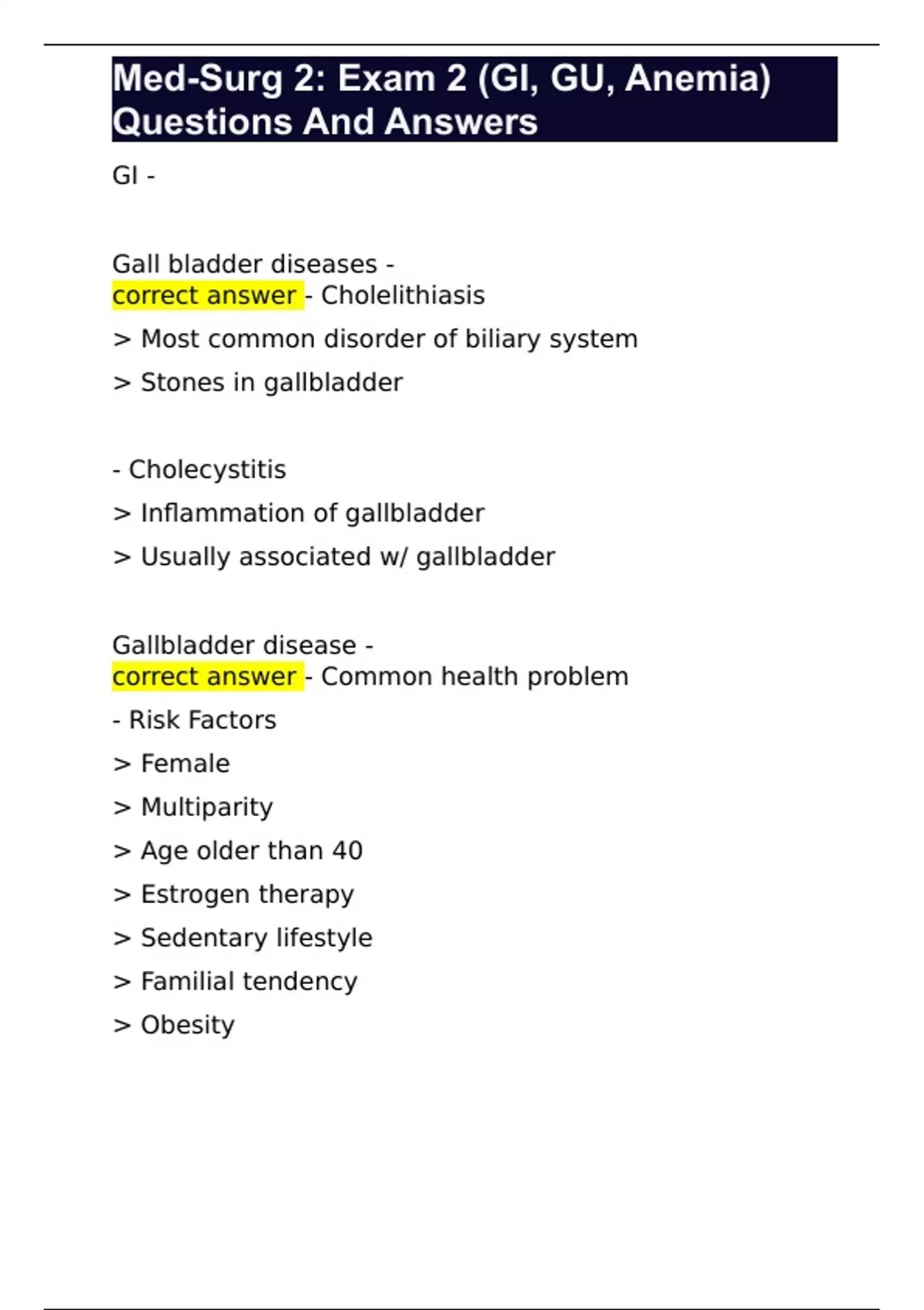 Med-Surg 2: Exam 2 (GI, GU, Anemia) Questions And Answers