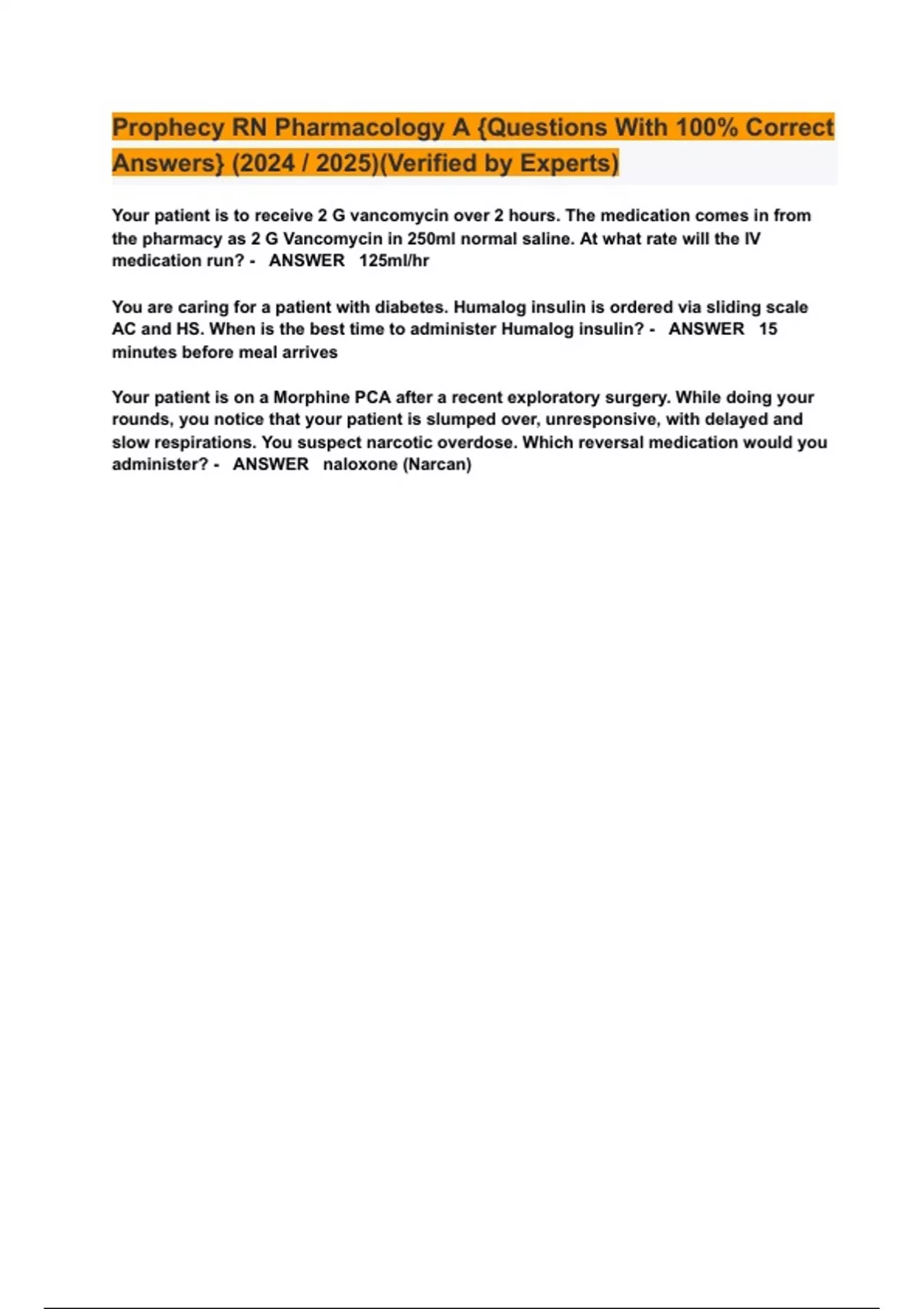 Prophecy RN Pharmacology A {Questions With 100% Correct Answers} (2024 / 2025)(Verified by Experts)