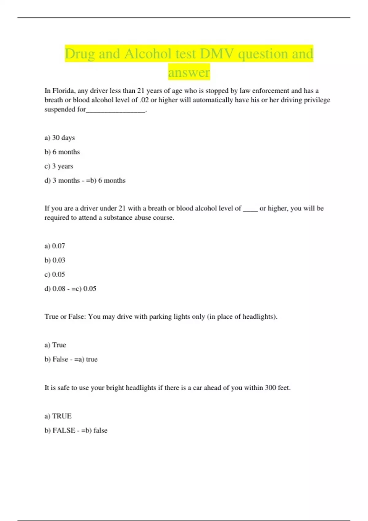 Drug and Alcohol test DMV question and answer In