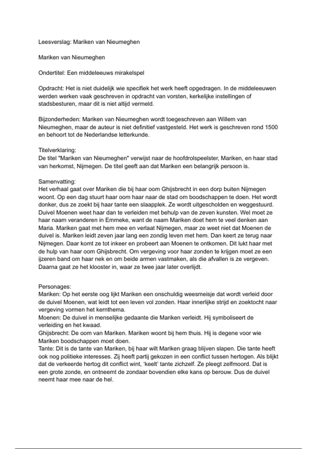 van herkomst, Nijmegen. De titel geeft aan dat Mariken een belangrijk persoon is.