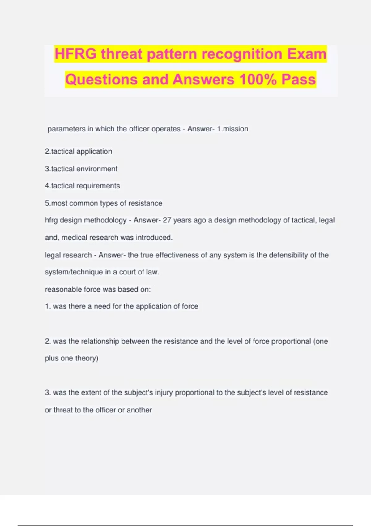 hfrg threat pattern recognition exam questions and