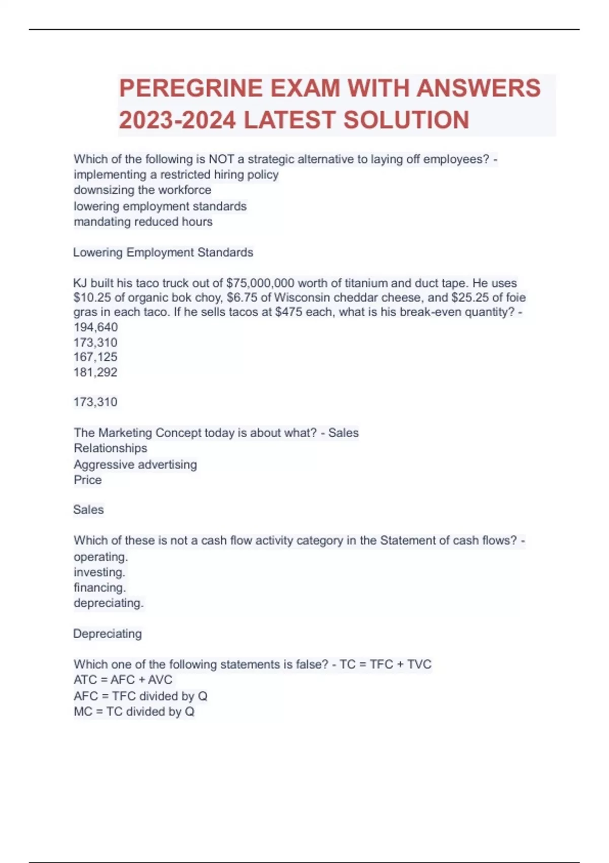 PEREGRINE EXAM WITH ANSWERS LATEST SOLUTION