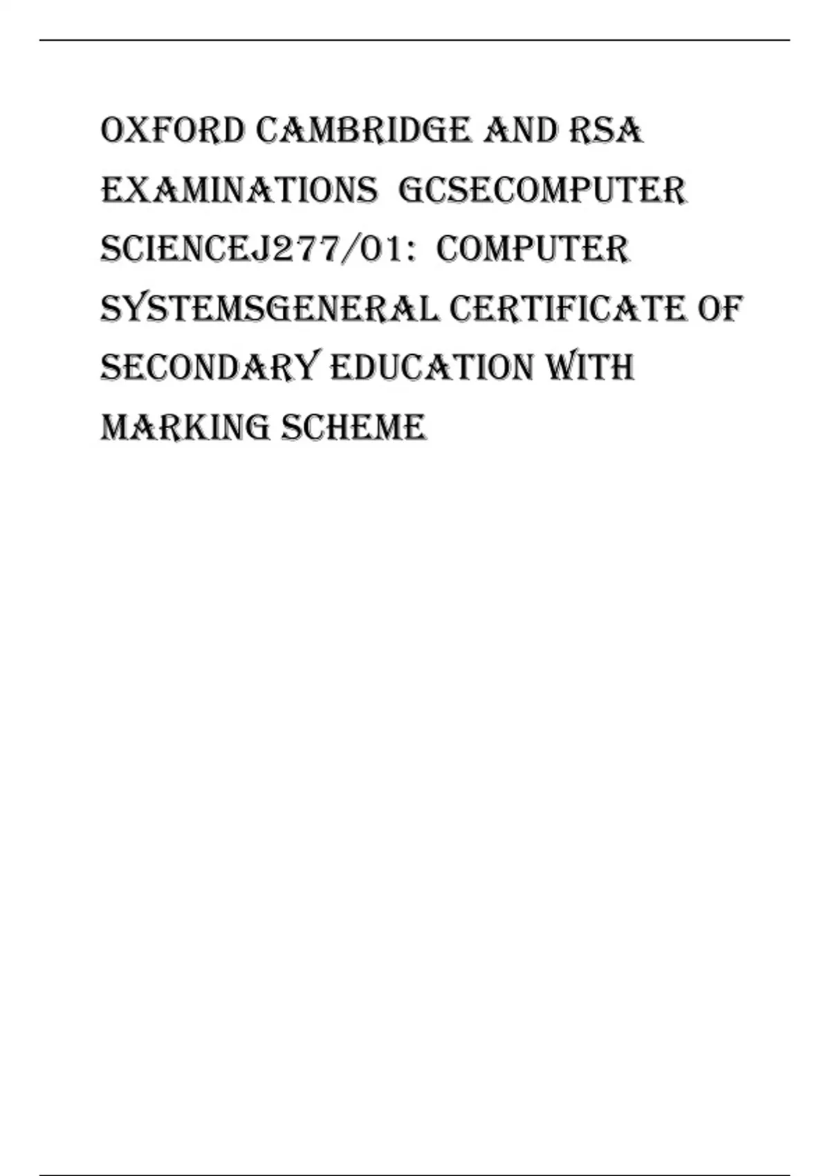 Oxford Cambridge and RSA Examinations GCSEComputer ScienceJ277/01: Computer systemsGeneral Certificate of Secondary Education with marking scheme