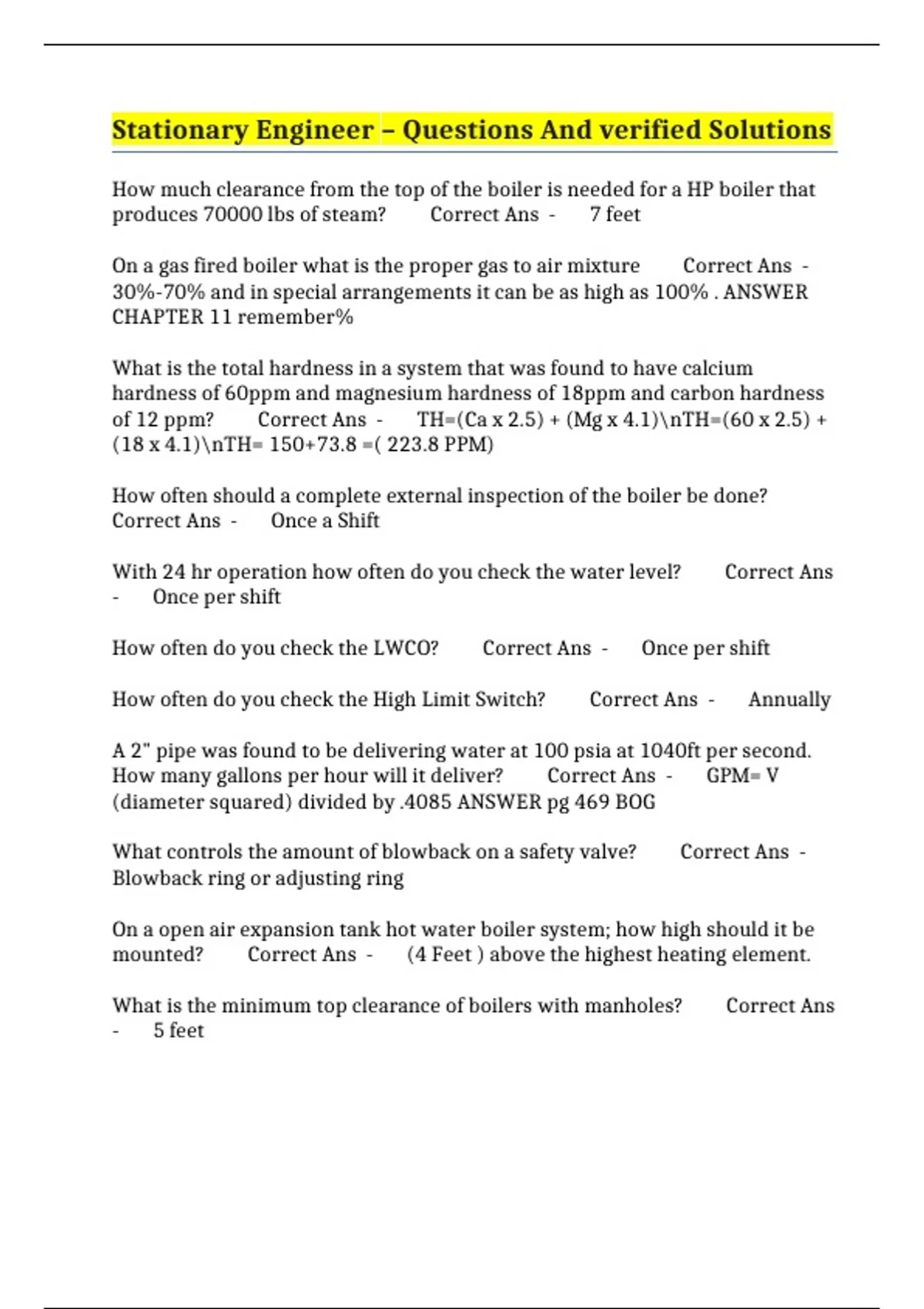 stationary engineer questions and verified solut