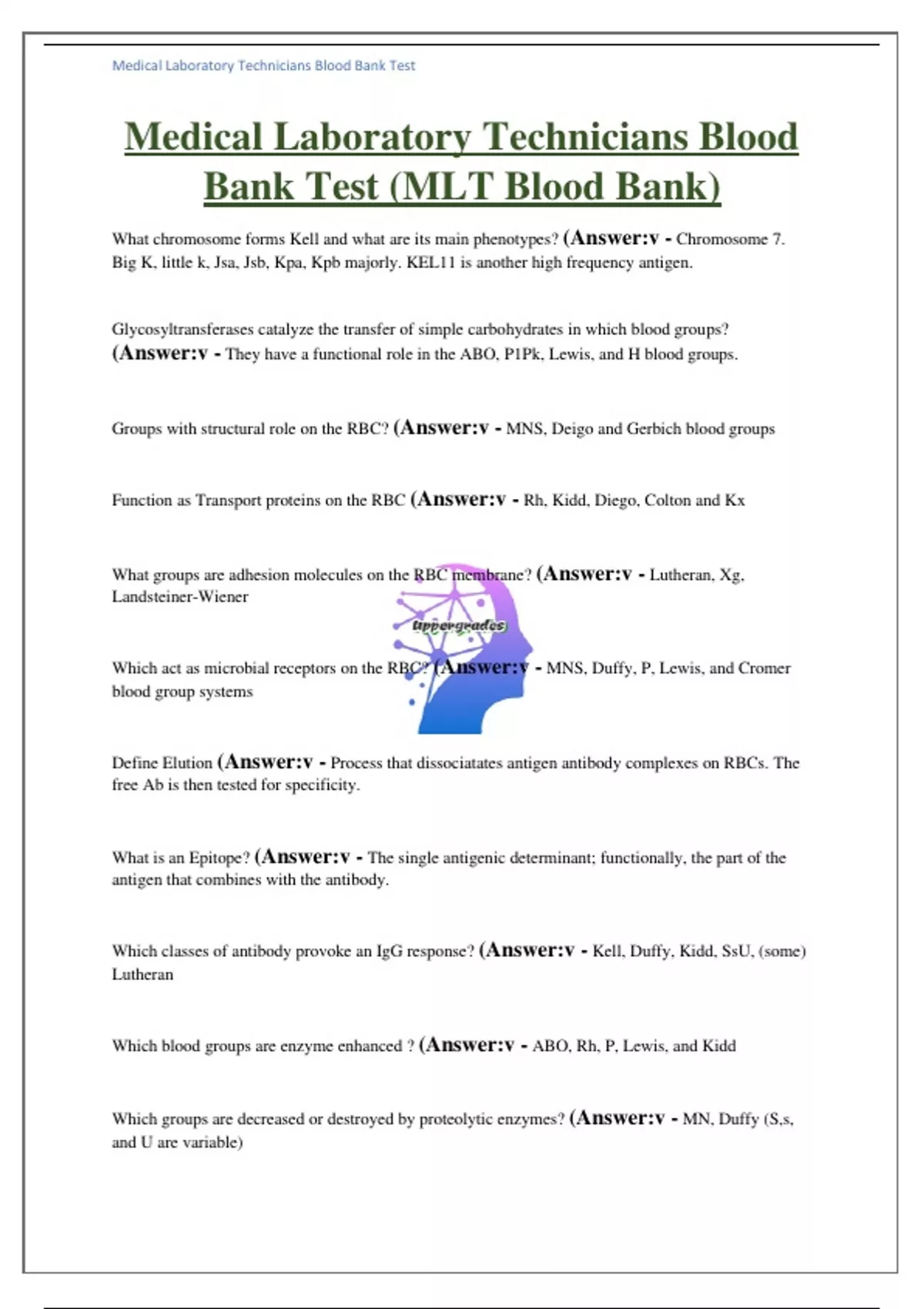 Medical Laboratory Technicians Blood Bank Test (MLT Blood Bank) With Complete Solutions,Medical Laboratory Technicians Blood Bank Test (MLT Blood Bank) With Complete Solutions,Medical Laboratory Technicians Blood Bank Test (MLT Blood Bank) With Complete Solutions