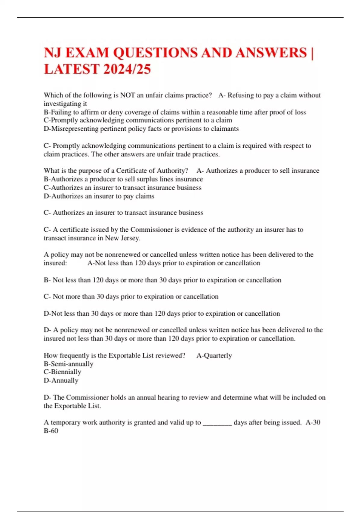 nj exam questions and answers latest 202425