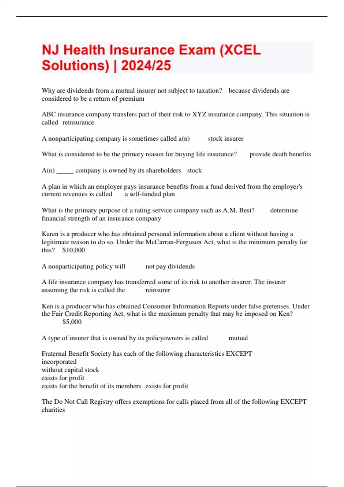 NJ Health Insurance Exam (XCEL Solutions) | 2024/25