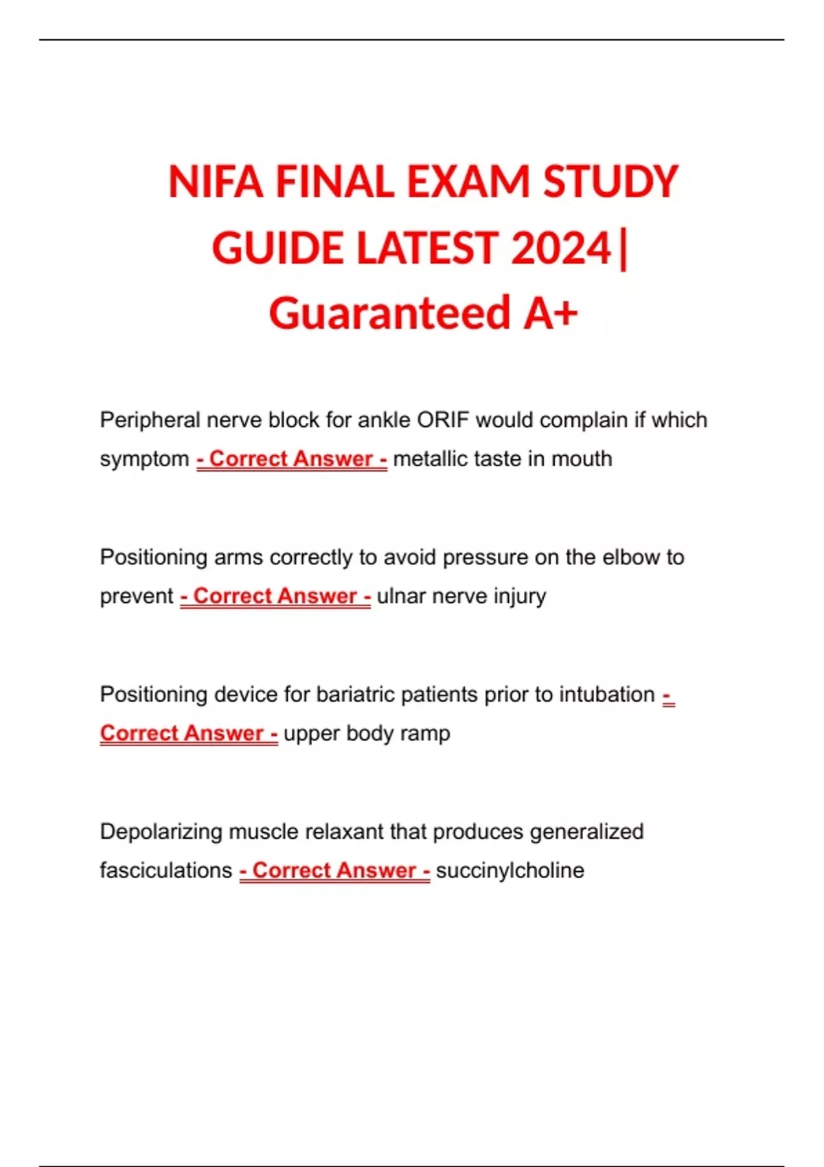 NIFA FINAL EXAM STUDY GUIDE LATEST 2024| Guaranteed A+