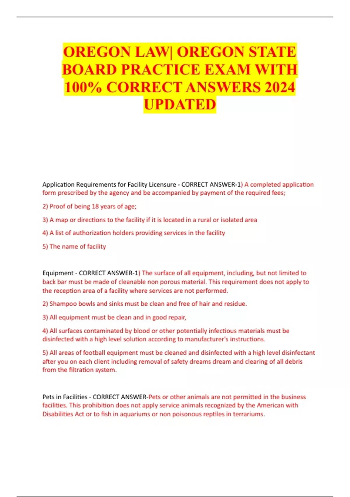 OREGON LAW| OREGON STATE BOARD PRACTICE EXAM WITH 100% CORRECT ANSWERS 2024 UPDATED