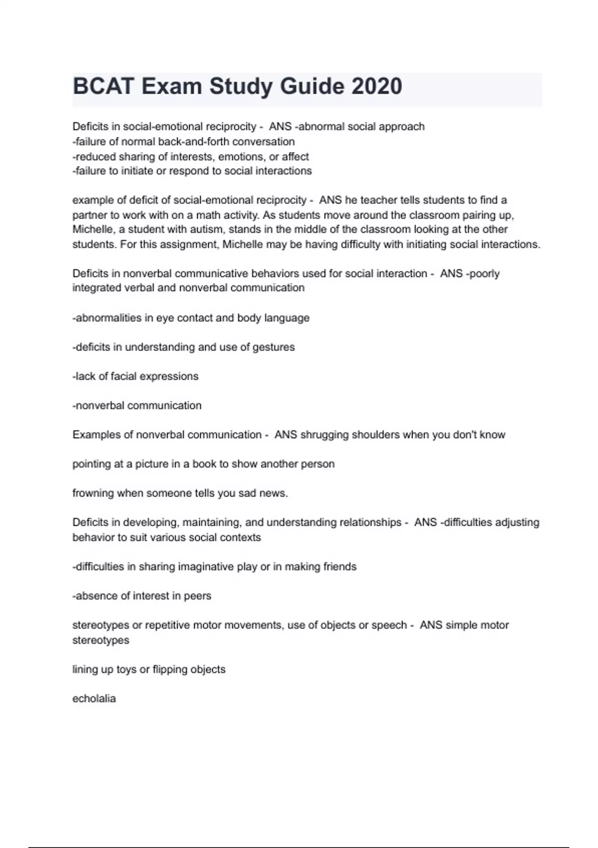 BCAT Exam Study Guide Questions & Answers 2024 ( A+ GRADED 100% VERIFIED)