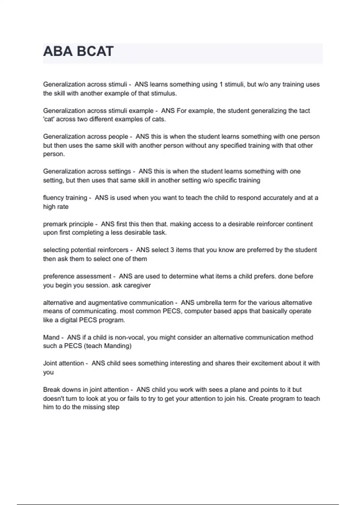 aba bcat questions answers 2024 a graded 100