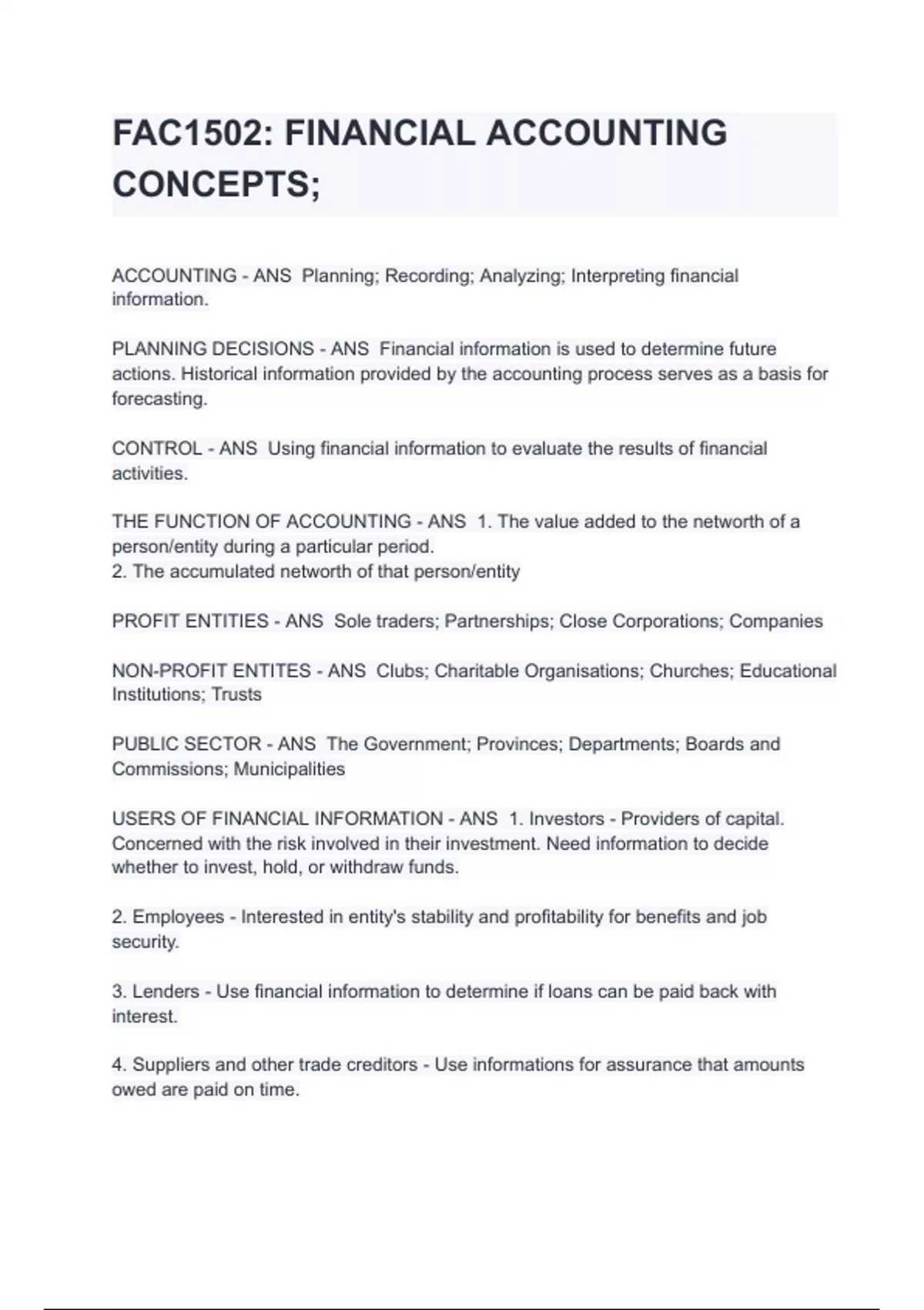 FAC1502: FINANCIAL ACCOUNTING CONCEPTS; with correct Questions And Verified Answers 2024