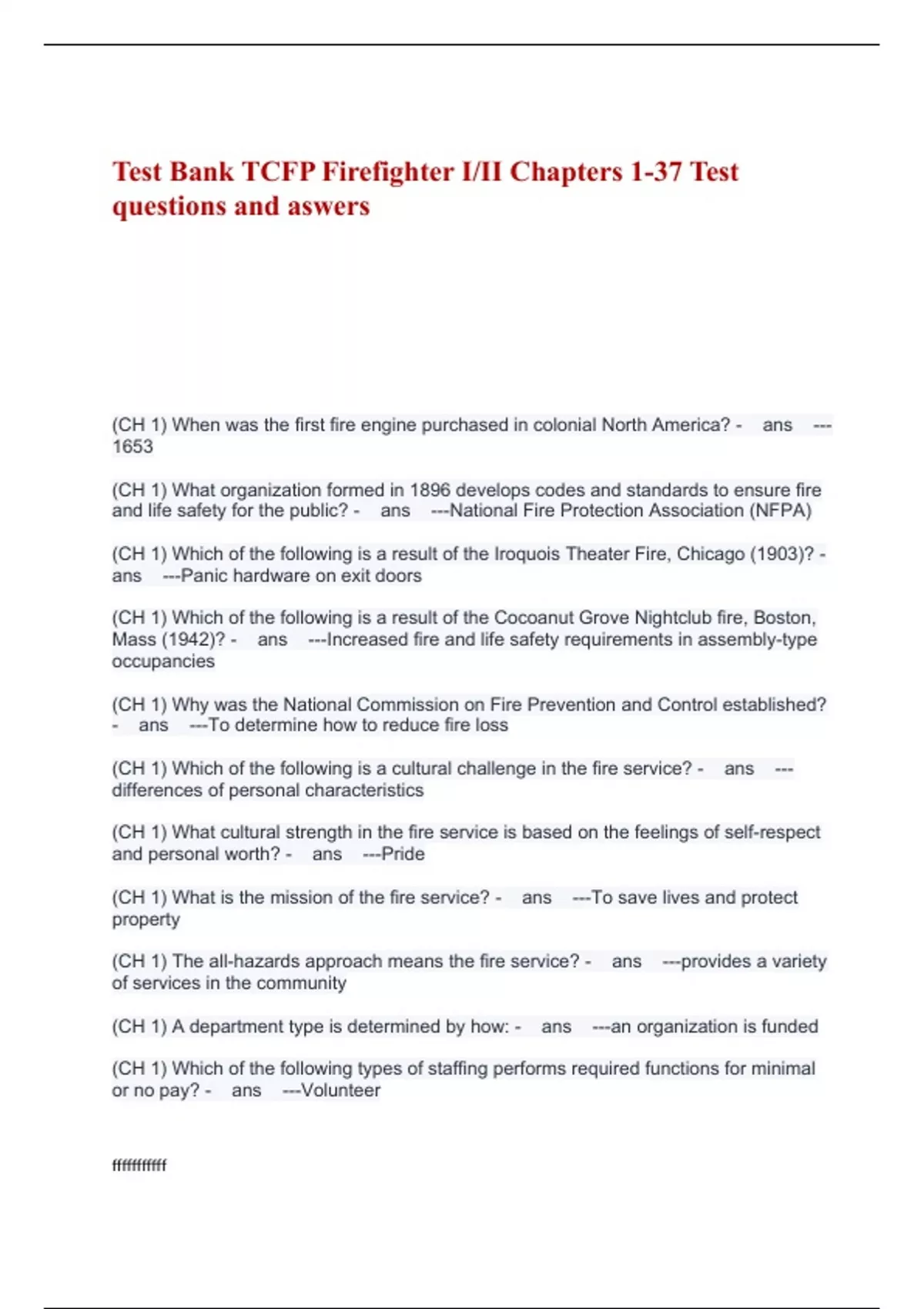 Test Bank TCFP Firefighter I/II Chapters 1-37 Test questions and aswers