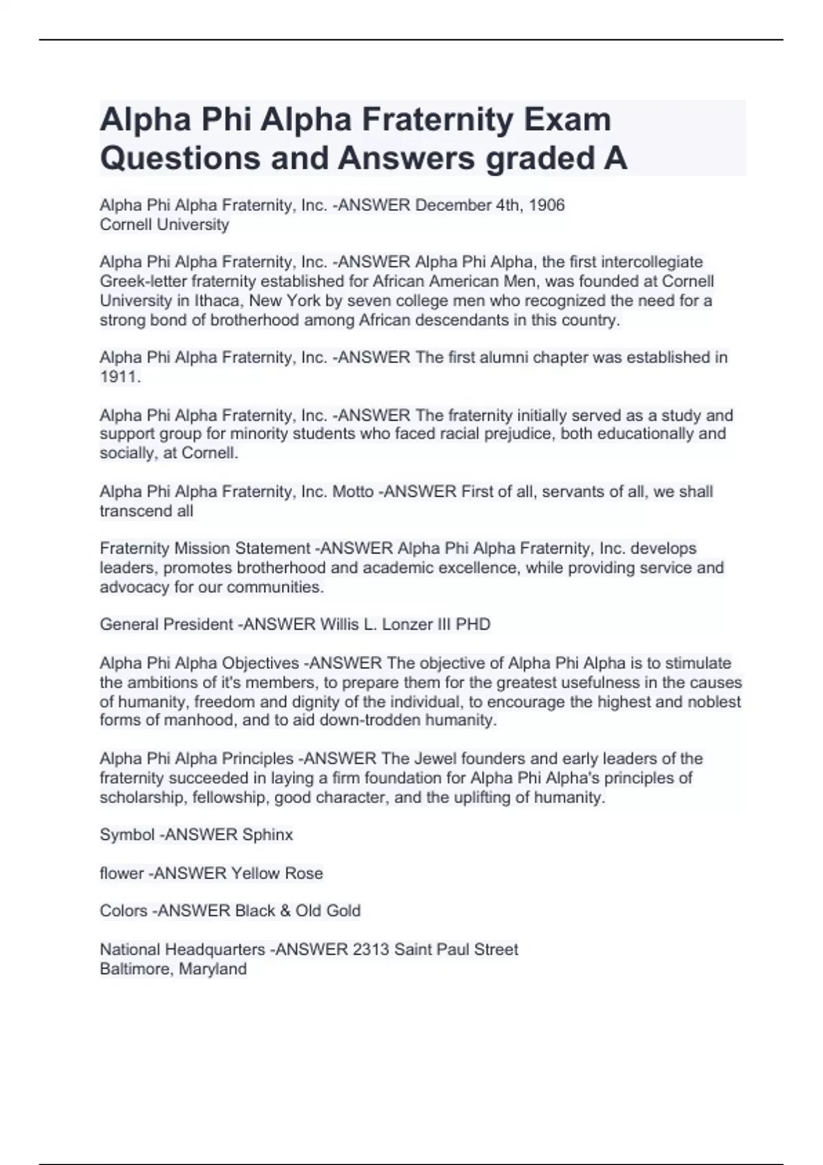 alpha phi alpha fraternity exam questions stuvia
