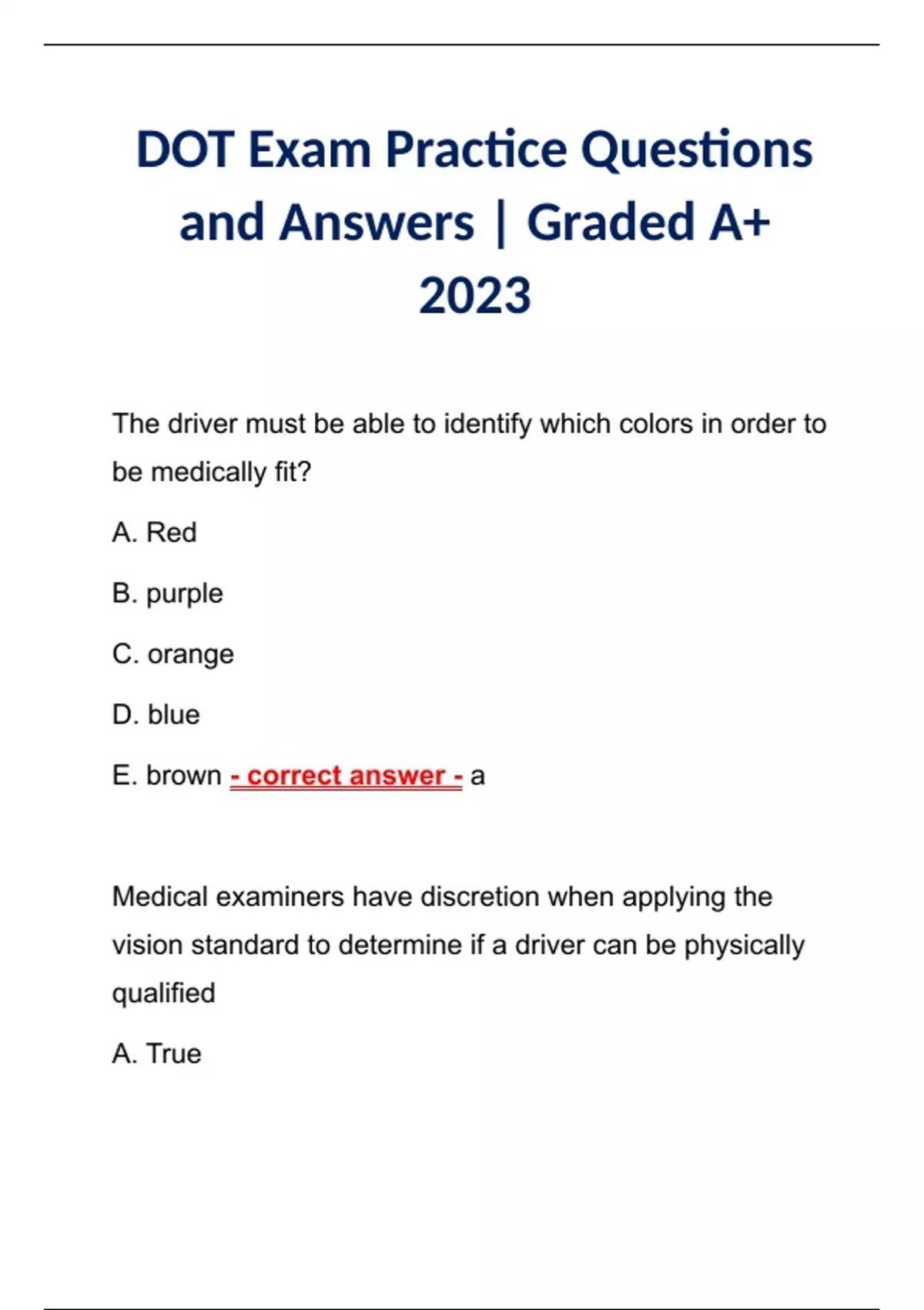 DOT Exam Practice Questions and Answers | Graded A+ 2023