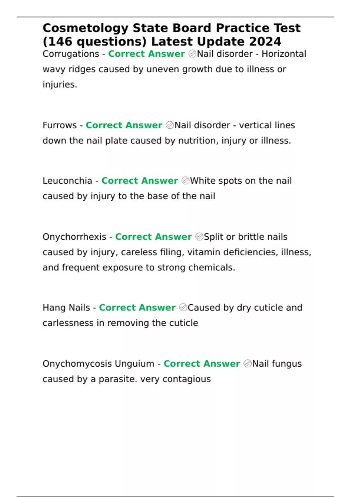 Summary Cosmetology State Board Practice Test (146 questions) Latest Update 2024
