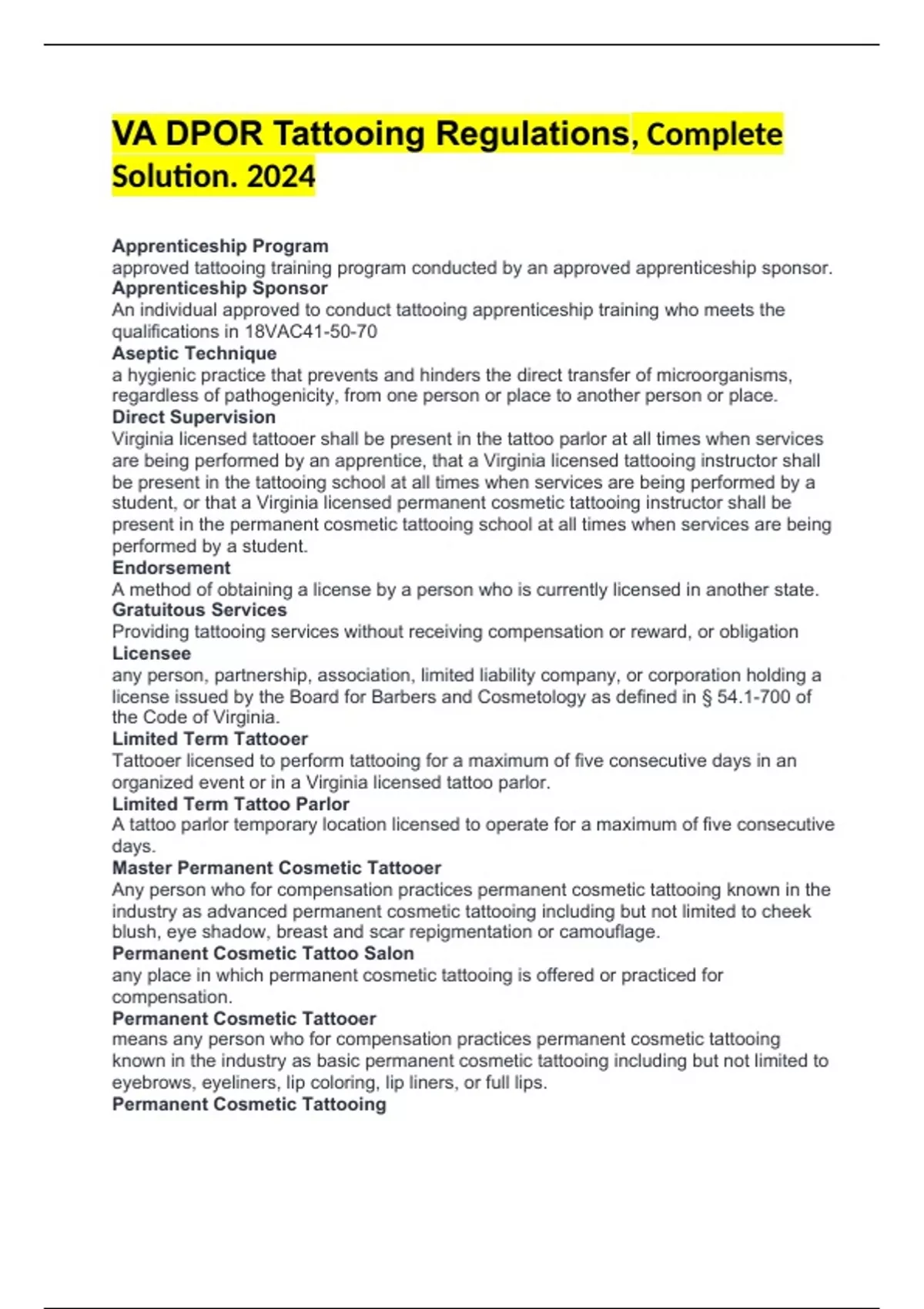 VA DPOR Tattooing Regulations, Complete Solution. 2024