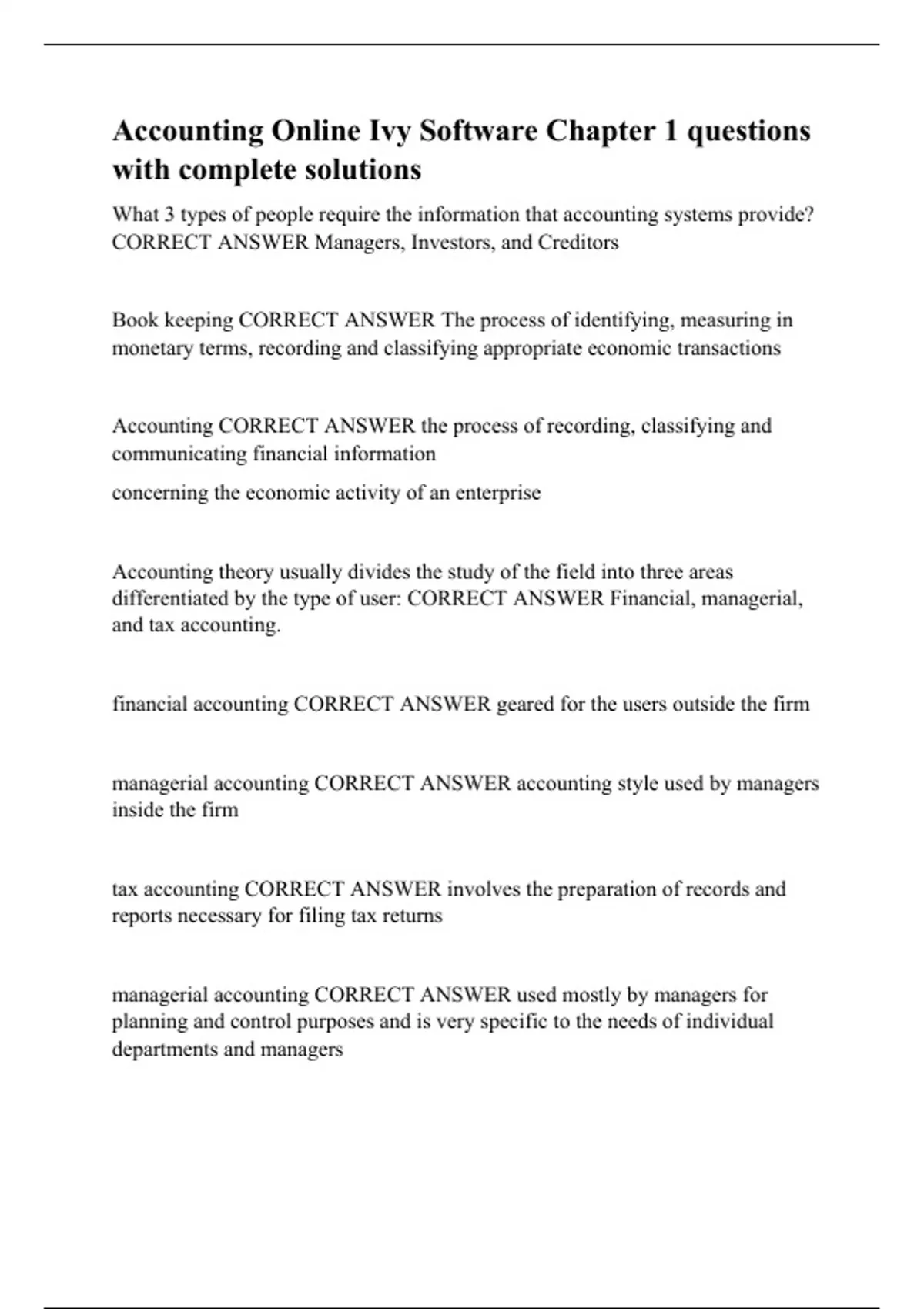 Accounting Online Ivy Software Chapter 1 questions with complete solutions