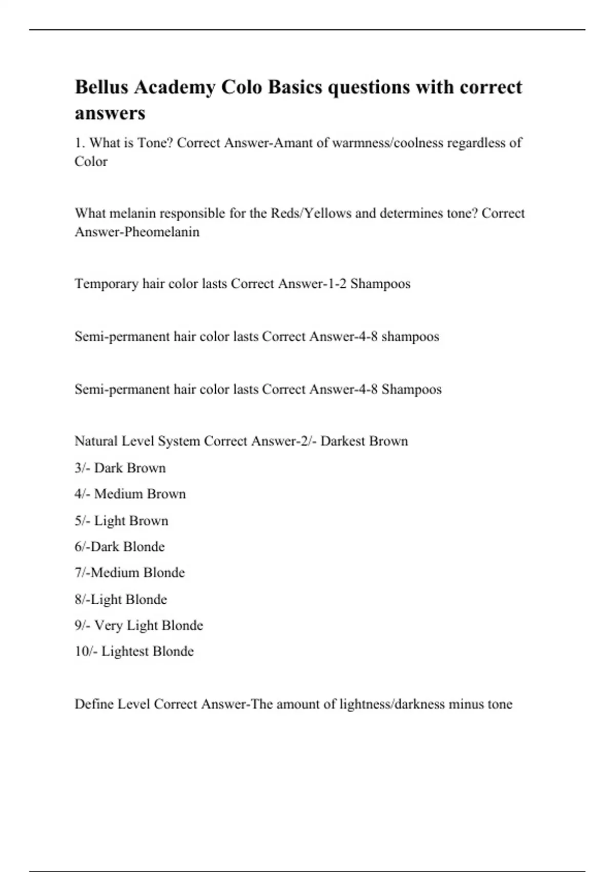 Bellus Academy Colo Basics questions with correct answers