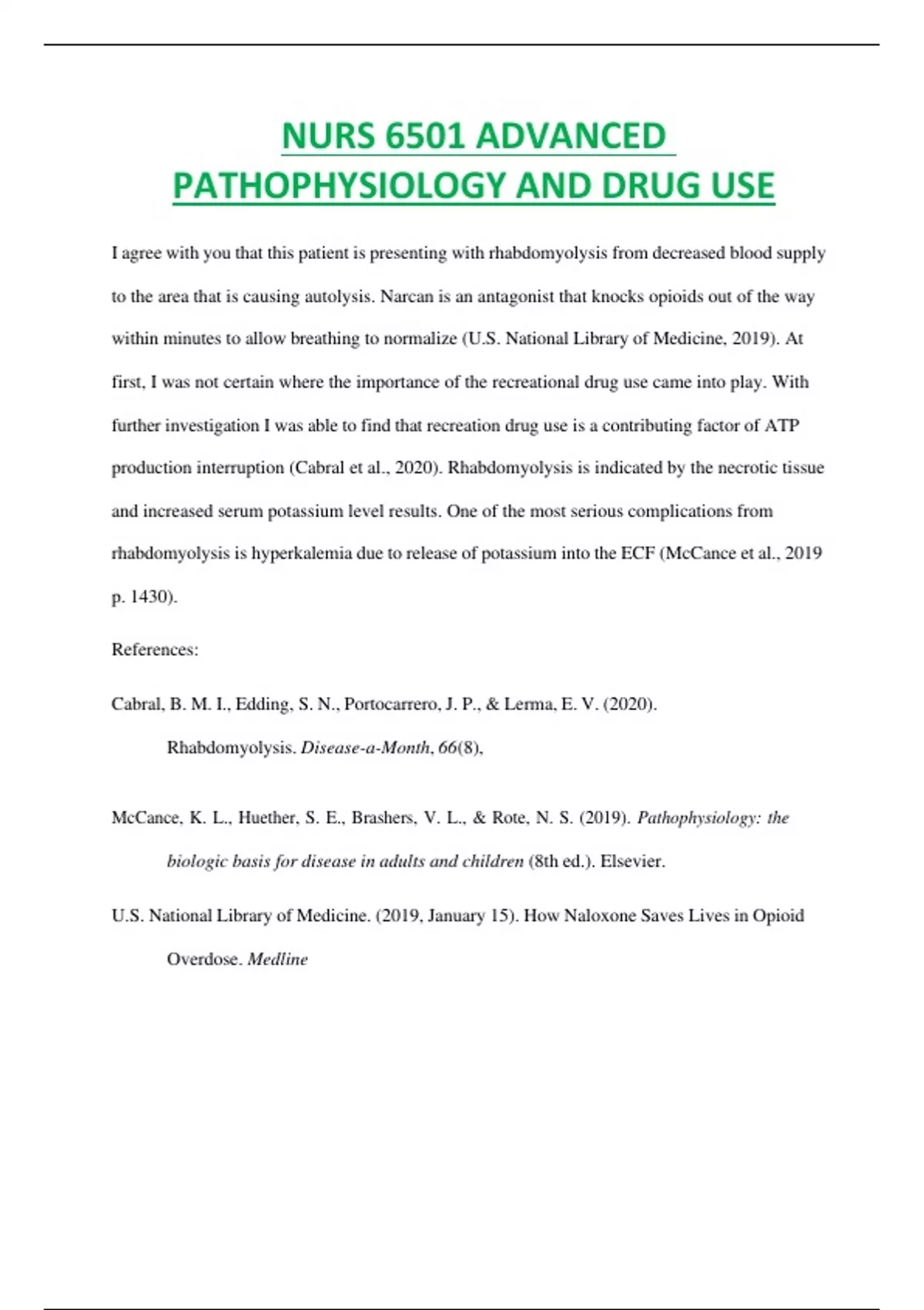 NURS 6501 ADVANCED PATHOPHYSIOLOGY AND DRUG USE