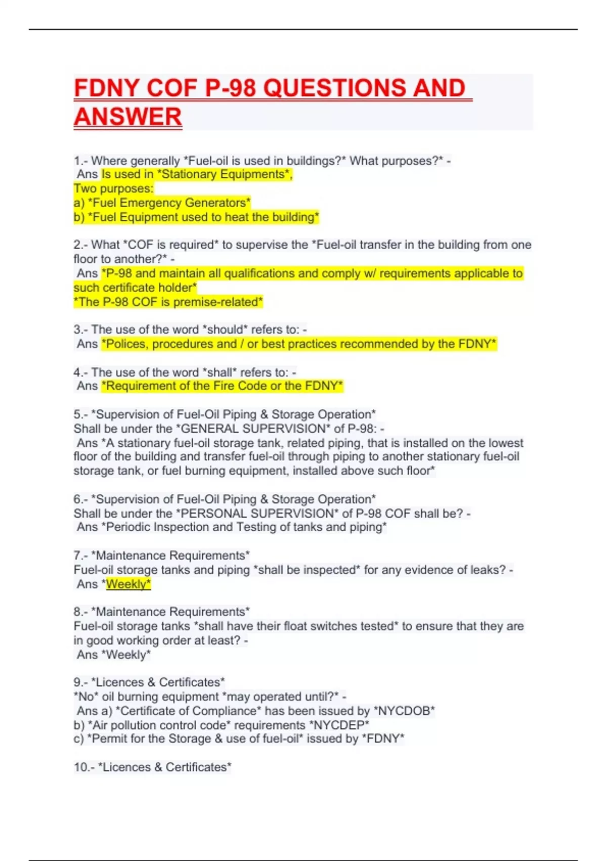 FDNY COF P-98 QUESTIONS AND ANSWER