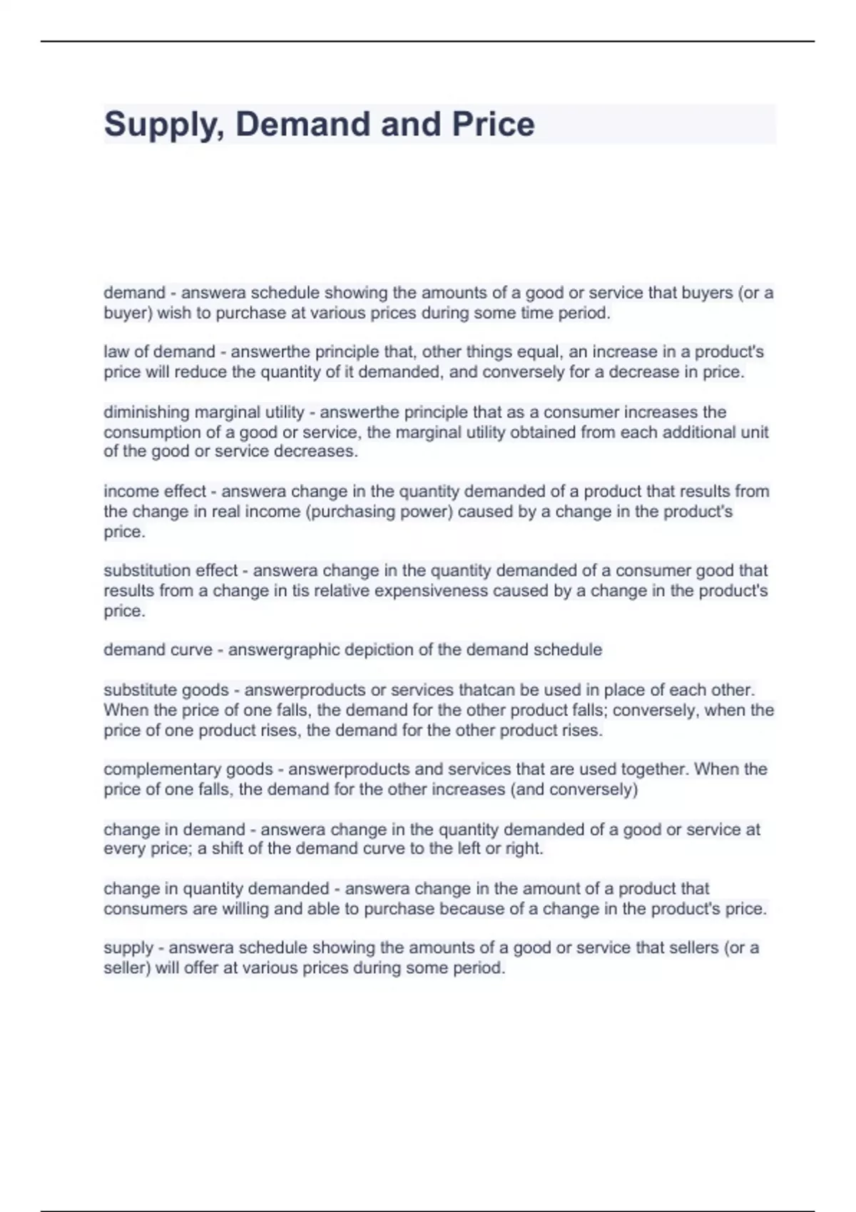 Supply, Demand and Price Questions with Solutions 2024