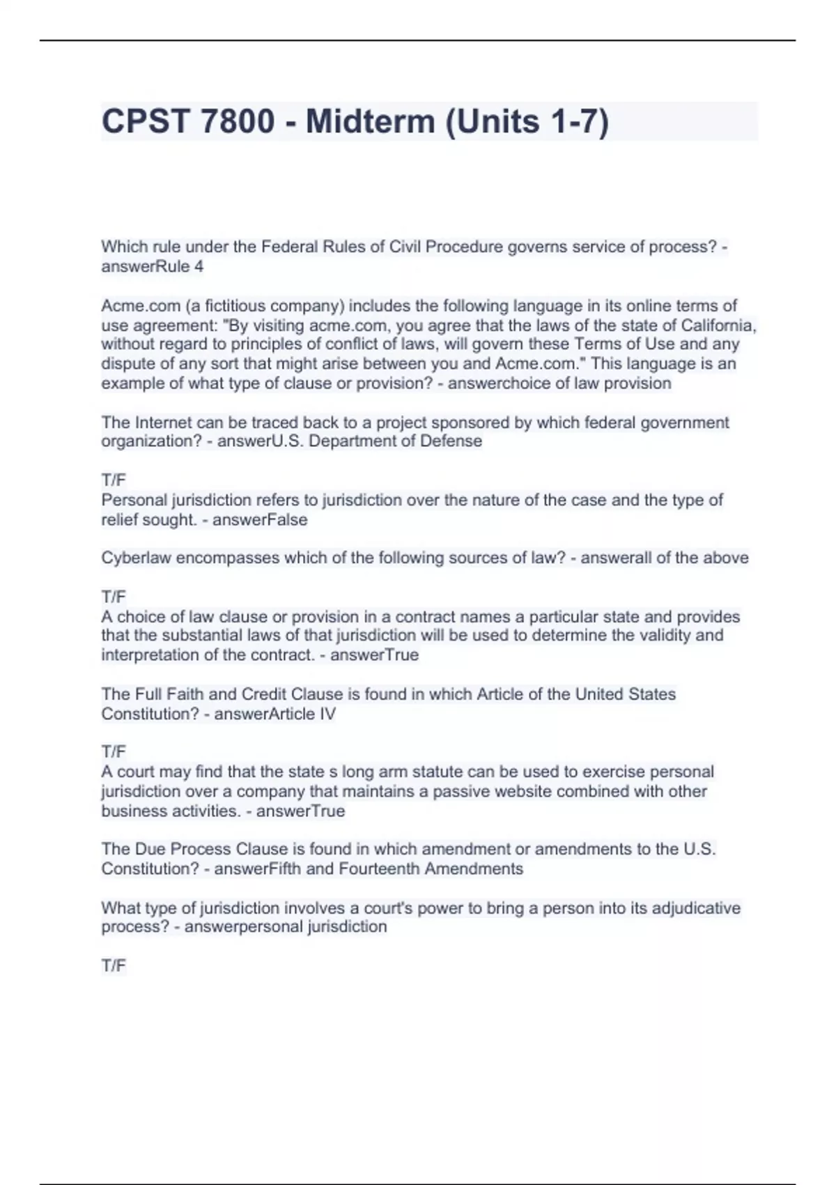 CPST 7800 - Midterm (Units 1-7) Quetions and Answers