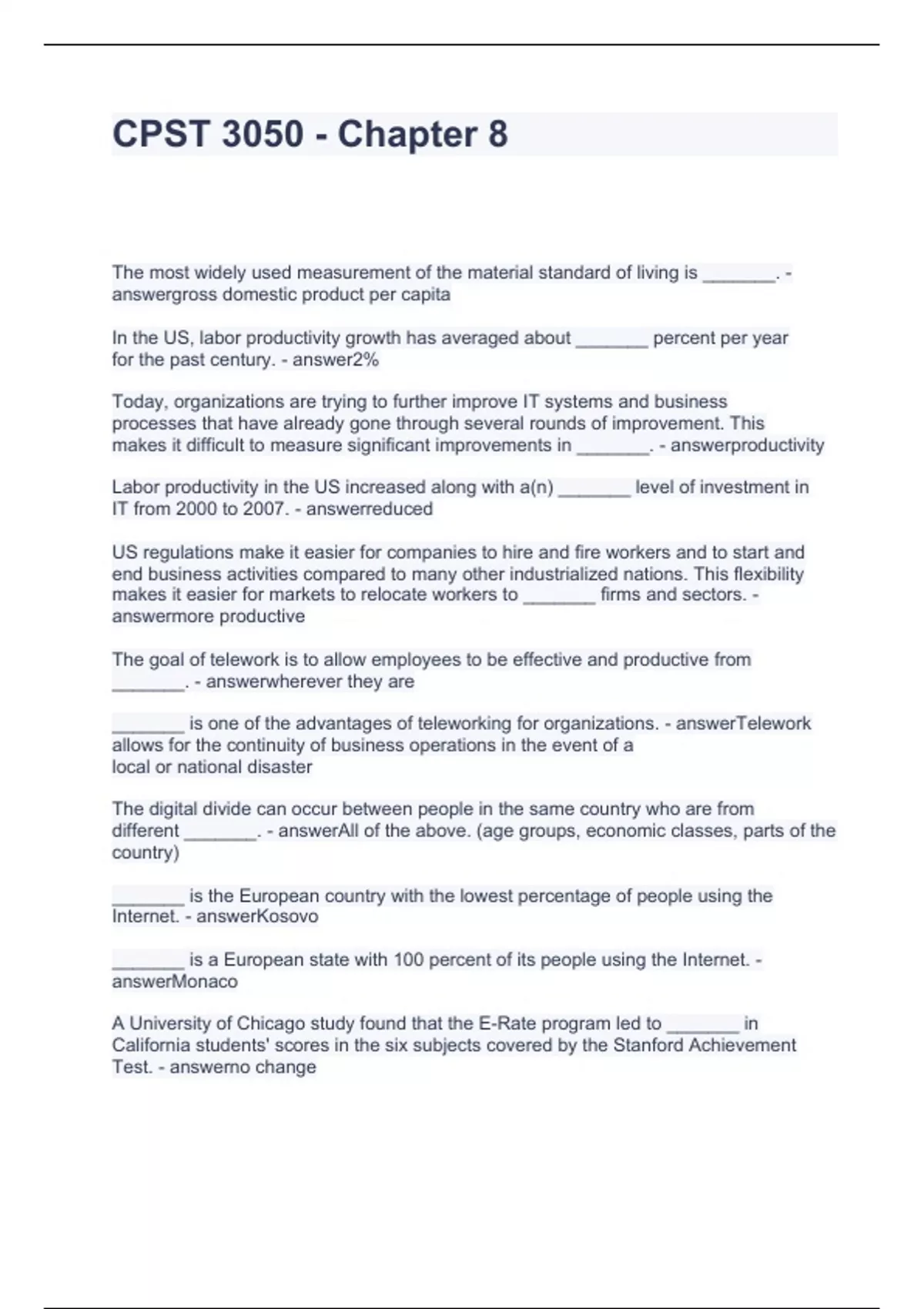 CPST 3050 - Chapter 8 Questions and Answers 100% correct