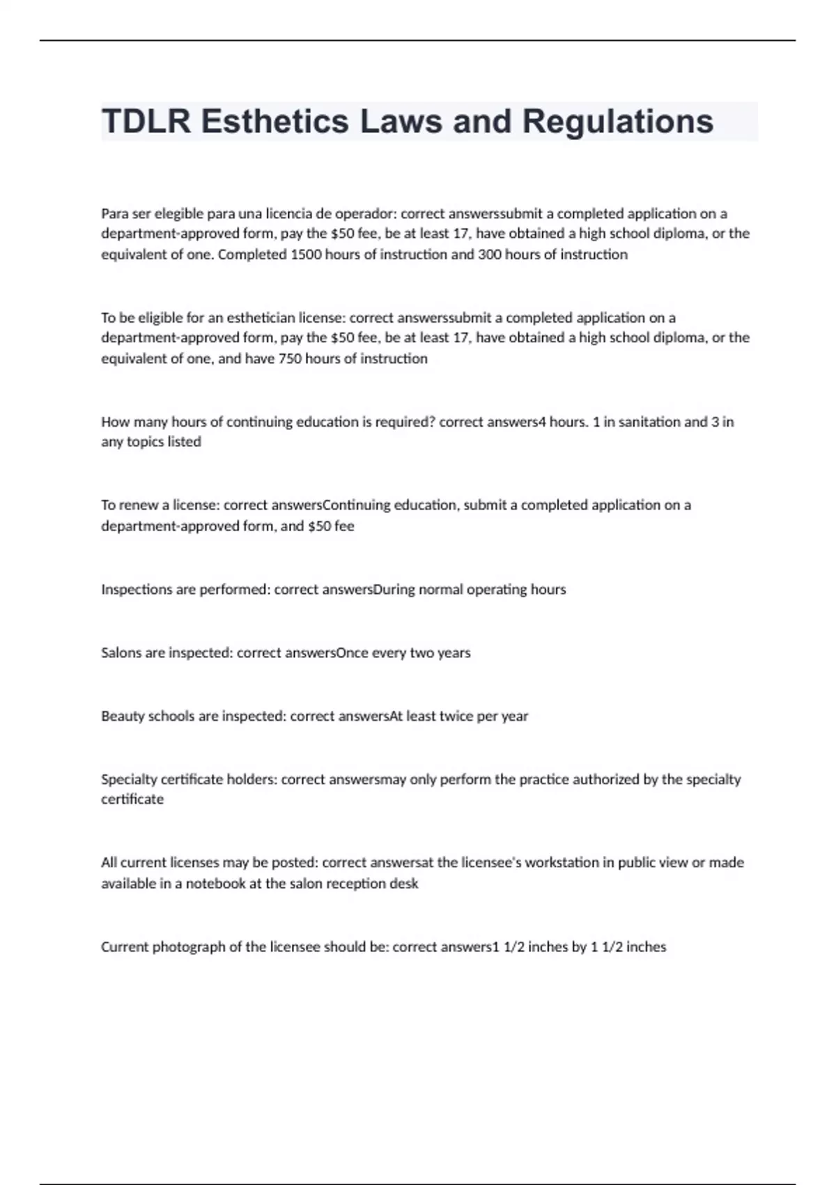 To be eligible for an esthetician license: correct answerssubmit a completed application on a department-approved form, pay the $50 fee, be at least 17, have obtained a high school diploma, or the equivalent of one, and have 750 hours of instruction