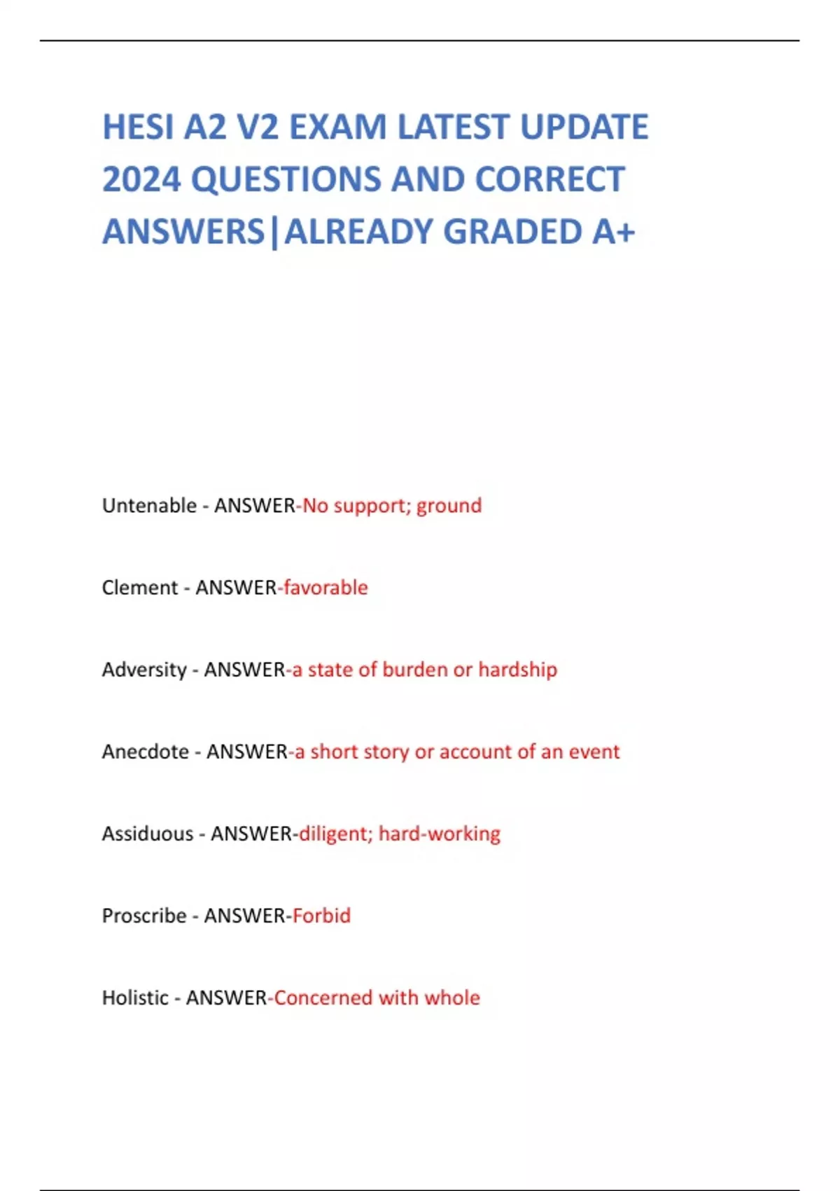 On this platform, you will discover a variety of meticulously crafted study materials, including detailed documents, comprehensive bundles, and expertly designed flashcards provided by the seller, Trustednurse. These resources are thoughtfully prepared to support your learning journey and make your studies and exam preparations smooth and effective. I am here to offer any assistance or answer any questions you may have regarding your academic needs. Please don’t hesitate to reach out for guidance or support—I am more than happy to help you achieve success in your courses and exams. Wishing you a seamless and rewarding learning experience. Thank you so much for choosing these resources!