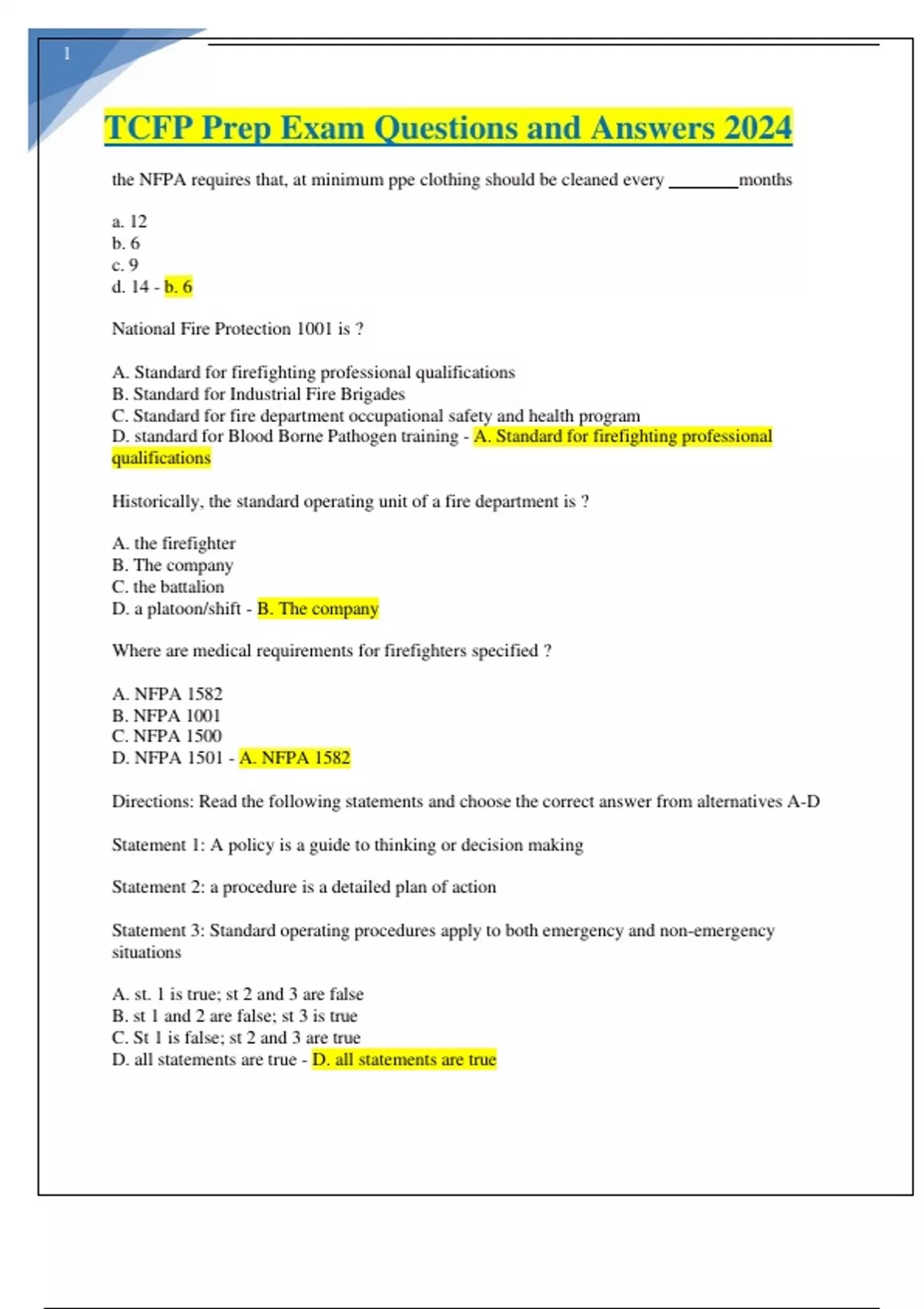 TCFP Exam Questions and Answers 2024.