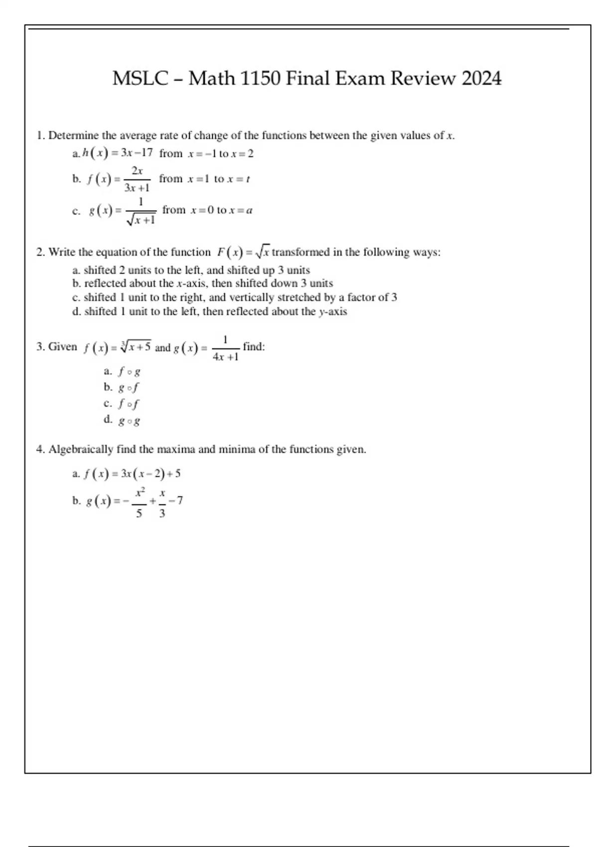 MSLC MATH 1150 FINAL EXAM REVIEW 202