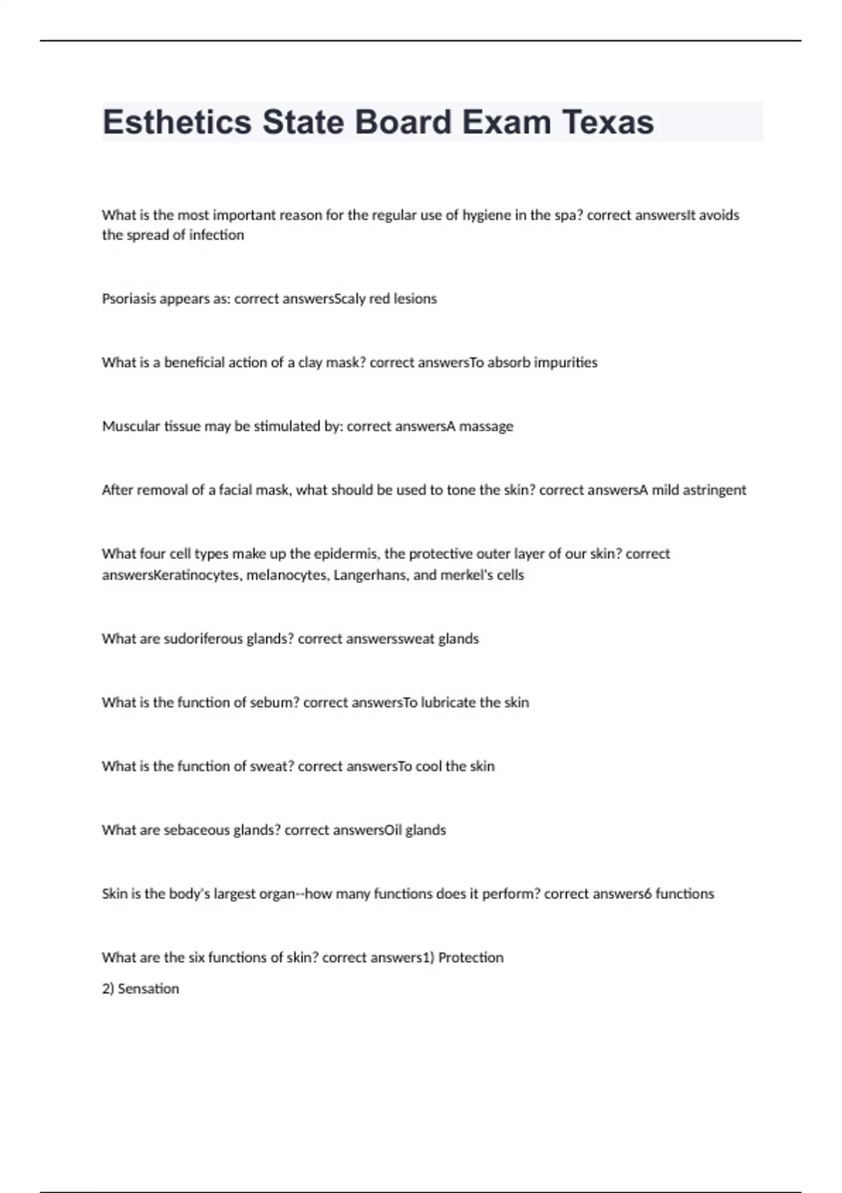 Esthetics State Board Exam Texas 2024 with 100% correct answers