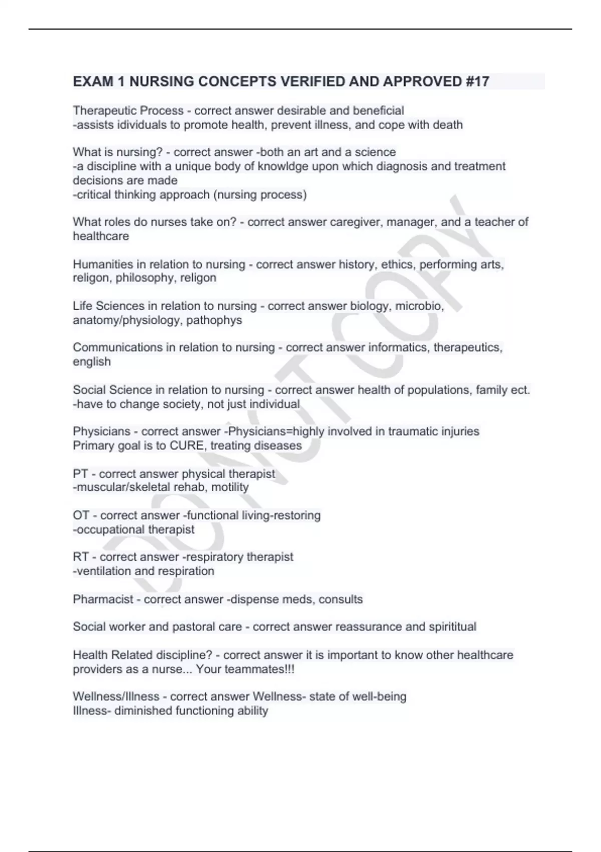 EXAM 1 NURSING CONCEPTS VERIFIED AND APPROVED #17.
