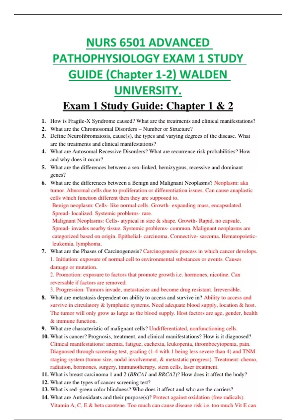 NURS 6501 ADVANCED PATHOPHYSIOLOGY EXAM 1 STUDY GUIDE.