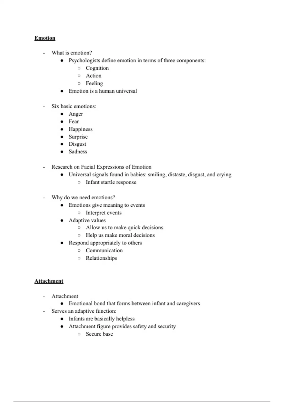 PSYC 273 Notes on "Emotion, Attachment, and Relationships"