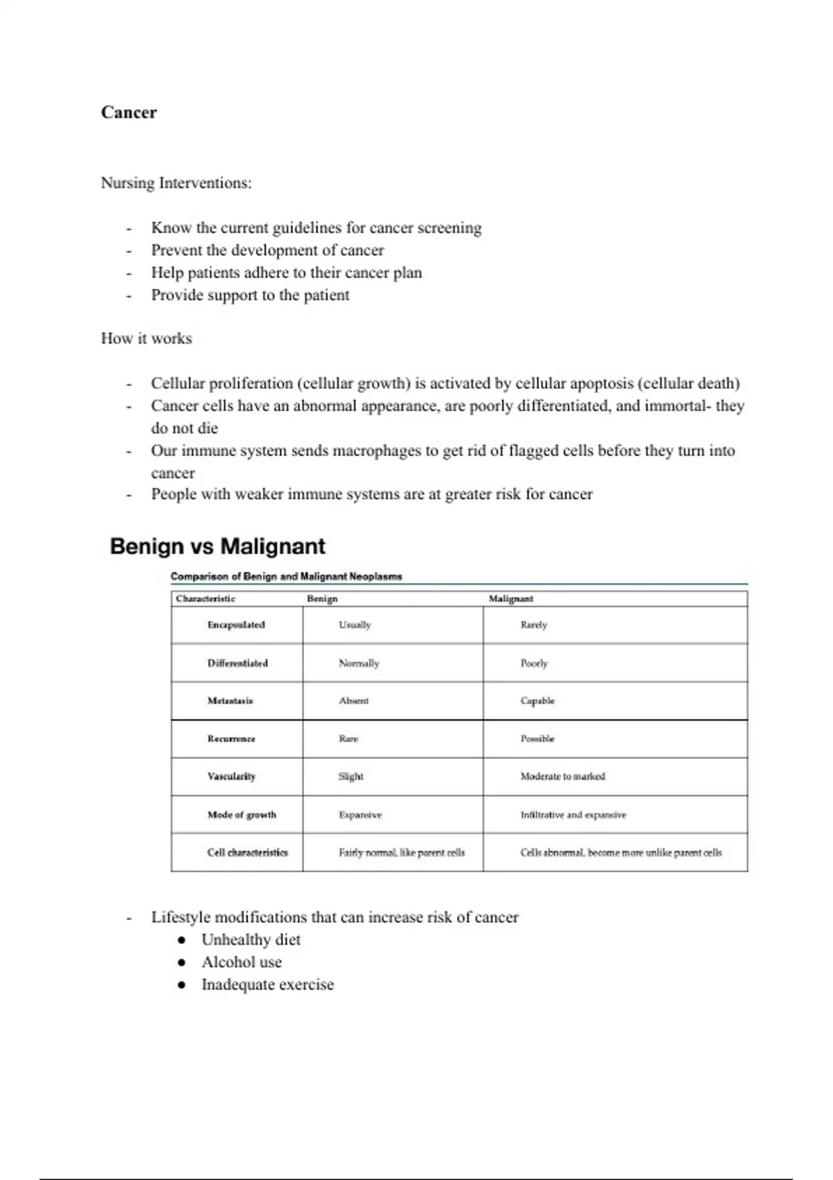 MSN 277 MedSurg Notes on "Cancer" with Dr. Bachmeier at Loyola Chicago