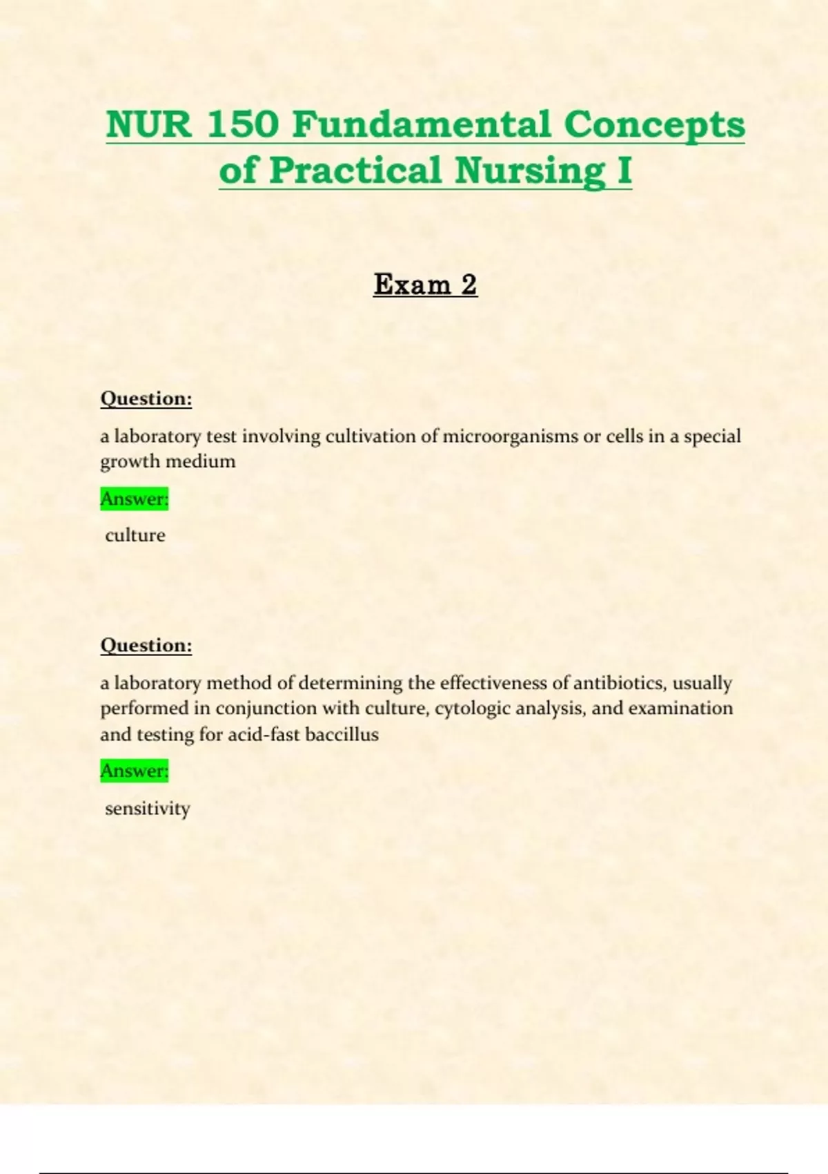 NUR150 / NUR 150 Exam 2 (Latest 2024 / 2025): Fundamental Concepts of Practical Nursing I | Questions and Verified Answers | Already Graded A | Hondros College